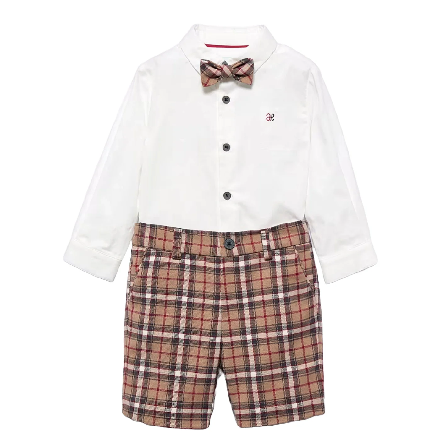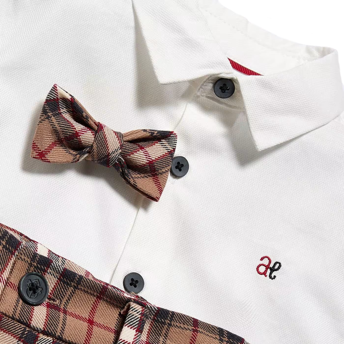Abel & Lula completo tre pezzi neonato in misto cotone Camicia in cotone bianca Maniche lunghe Chiusura centrale con bottoni a contrasto Ricamo logo lato cuore Papillon a quadri rimovibile Bermuda a quadri Vita con passanti Chiusura con bottone Tasche a filo Composizione: camicia 100% cotone bermuda 64% poliestere 34% viscosa 2% elastanMade in CinaColleizone […]