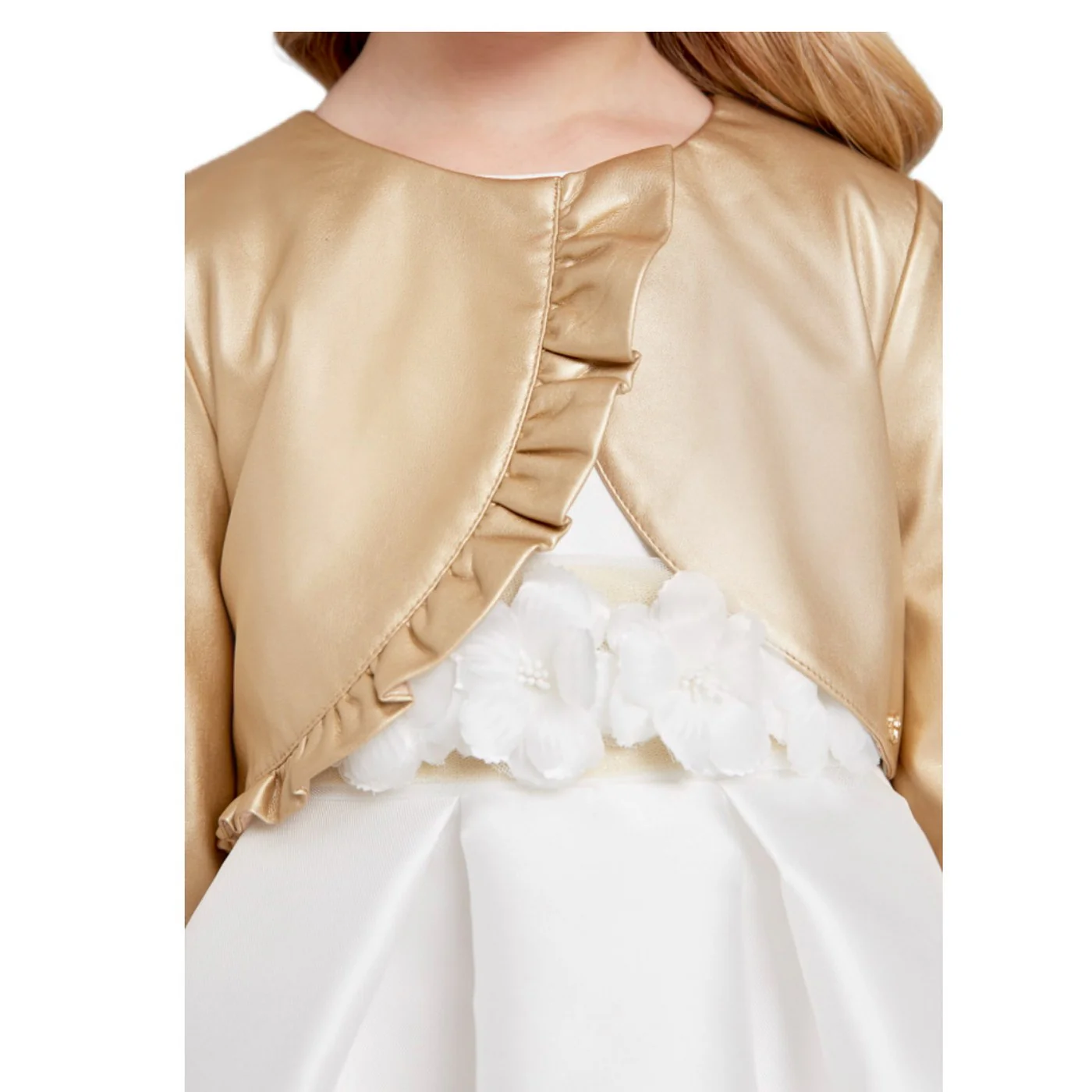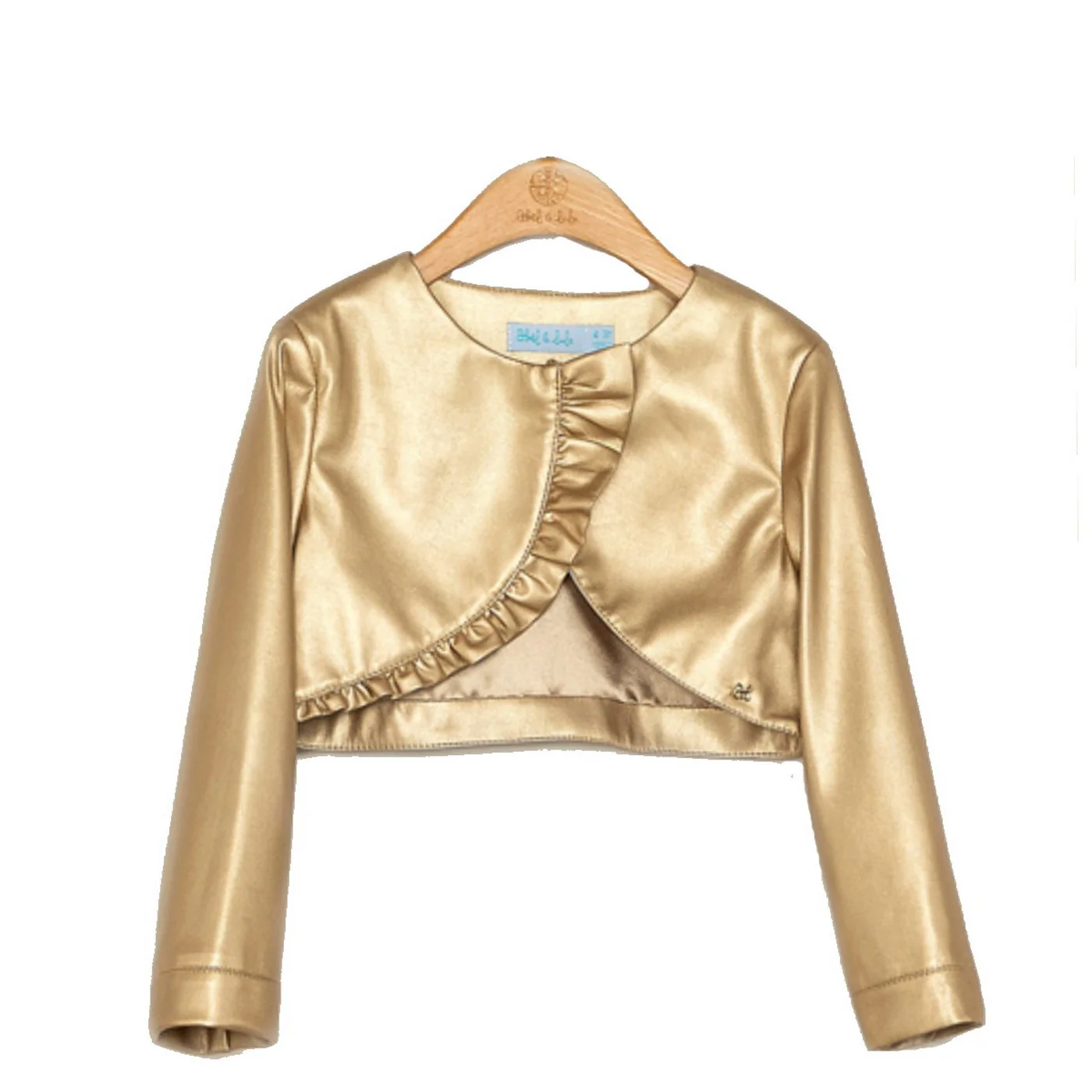 Abel & Lula giubbino ecopelle baby girl oro Chiusura a un bottone decentrata con volantComposizione: 55% poliestere 45% poliuretanicafodera 100% poliestere Made in CinaCollezione Continuativa Vestibilitร :Taglia Etร