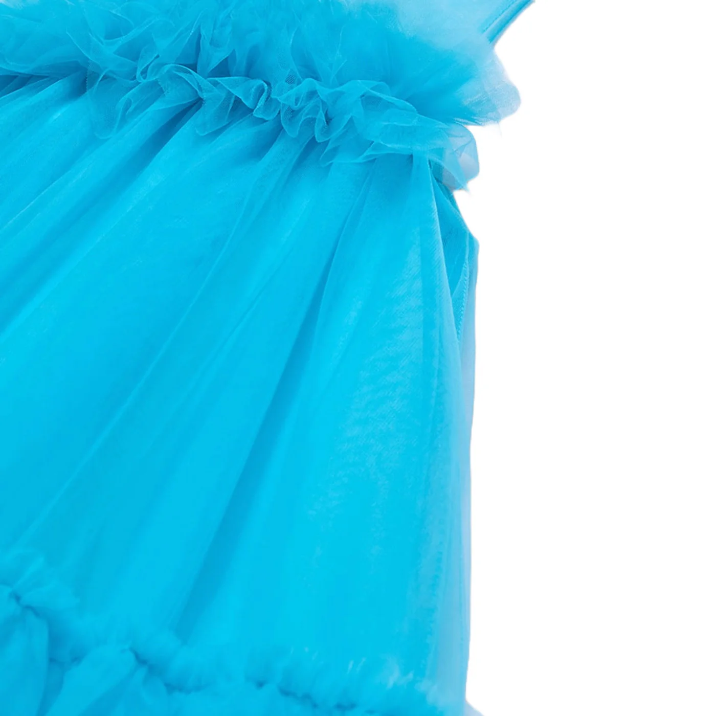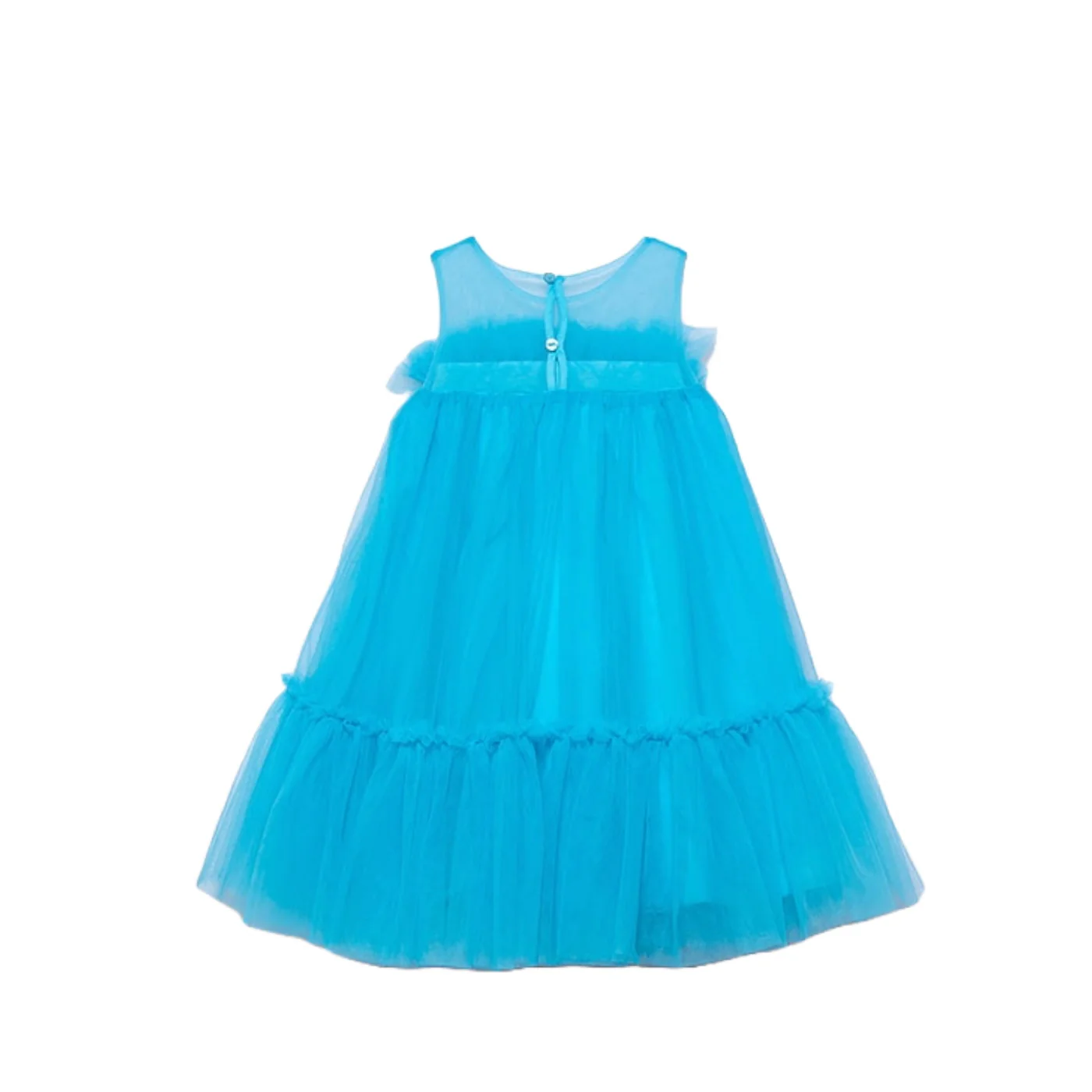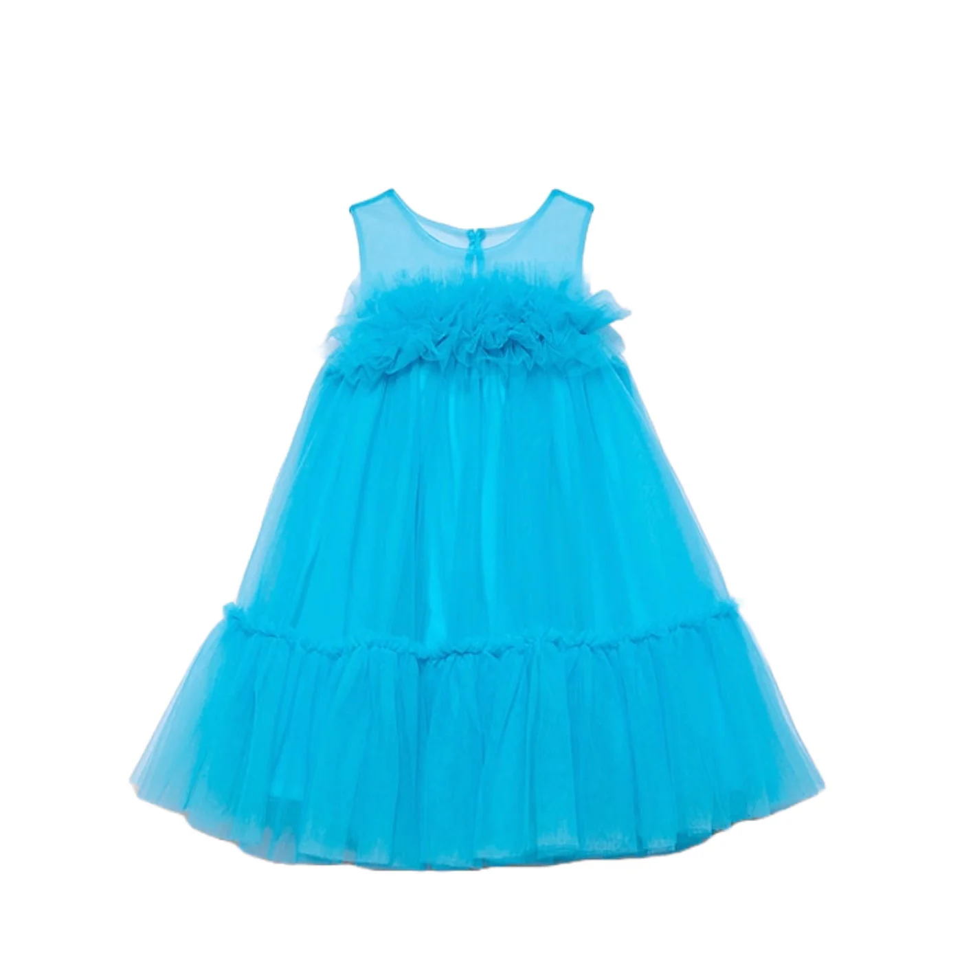 Abel & Lula vestito girocollo bambina in tulle turchese Senza maniche Parte supriore con rouge a balze Fondo svasato in tulle luminosoComposizione: esterno 100% poliammide fodera 100% cotoneMade in CinaCollezione Primaera Estate Vestibilitร :Taglia Etร