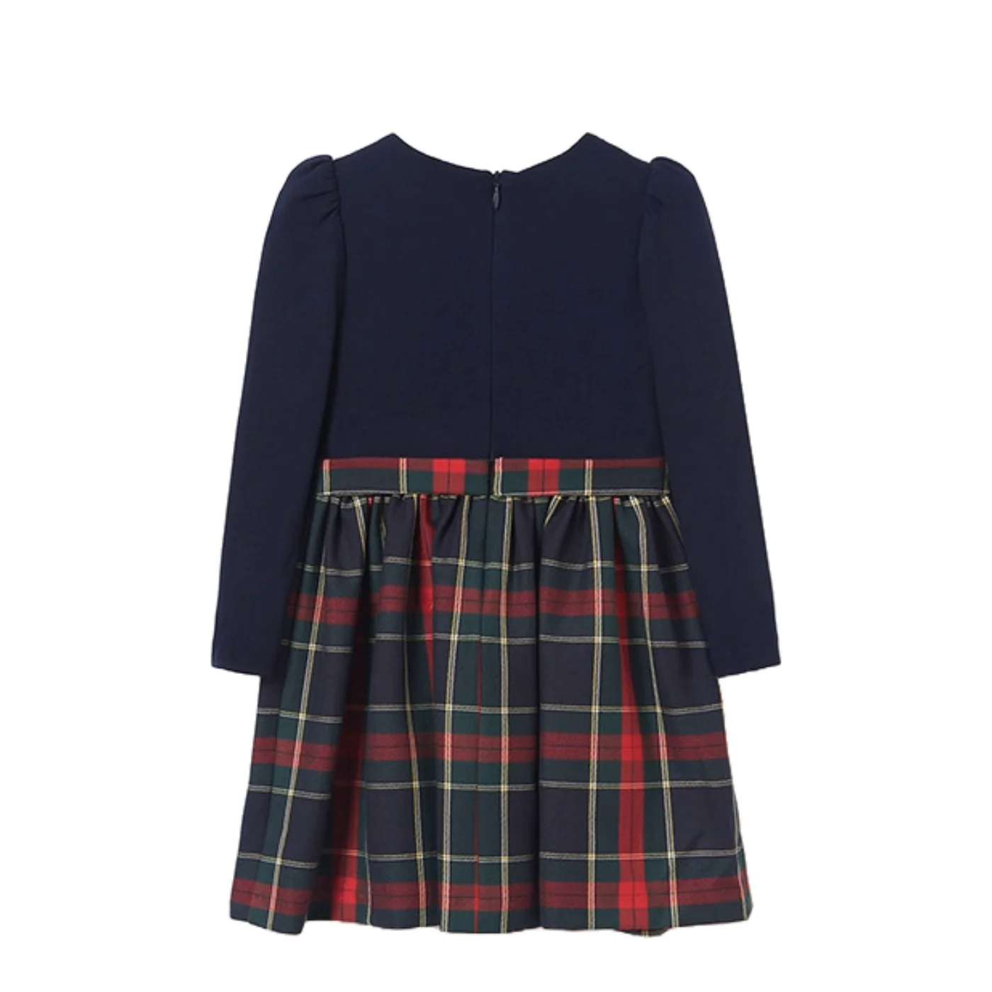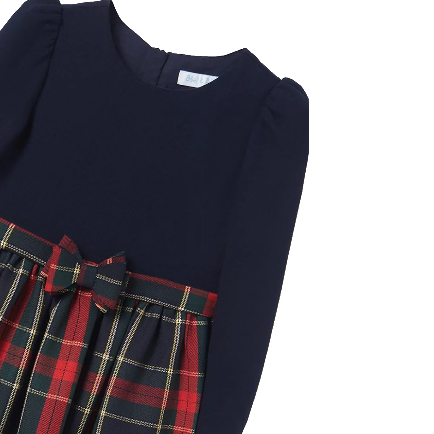 Abel & Lula vestito girocollo ragazza misto viscosa blu tartan Tema Natale Maniche lunghe a palloncino Parte superiore in Punto Milano Fascia in vita con fiocco rimovibile Fondo svasato Fantasia tartan Chiusura sul retro cernieraComposizione: 46% viscosa 39% poliestere 12% poliammide 3% elastan fodera 100% cotoneMade in MaroccoCollezione Autunno Inverno Vestibilitร :Taglia Etร