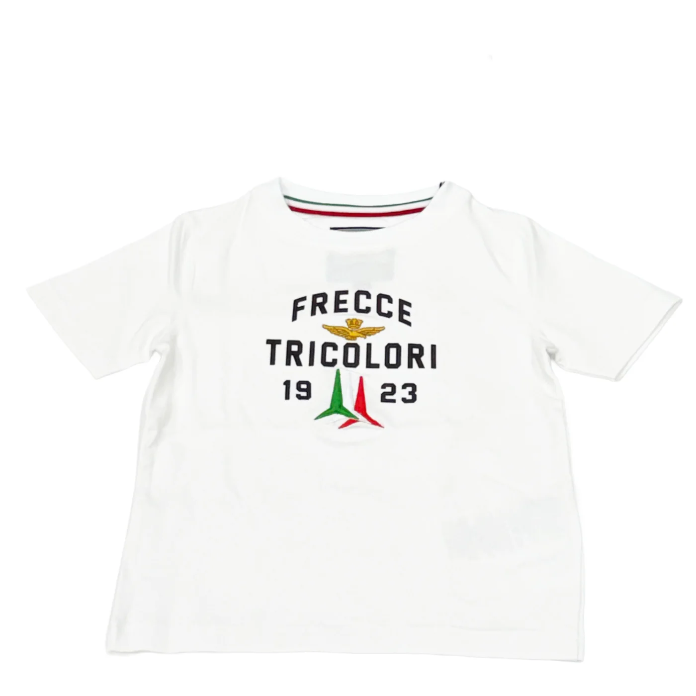 Aeronautica Militare completo due pezzi bambino in cotone bianco neroT-shirt girocollo Maniche corte Logo frontale con ricamo Bermuda in cotone garzato Vita elastica con coulisse regolabile Tasche a filo Ricamo logo sul fondoComposizione: 95% cotone 5% elastanMade in IndiaCollezione Primavera Estate Vestibilitร :Taglia Etร