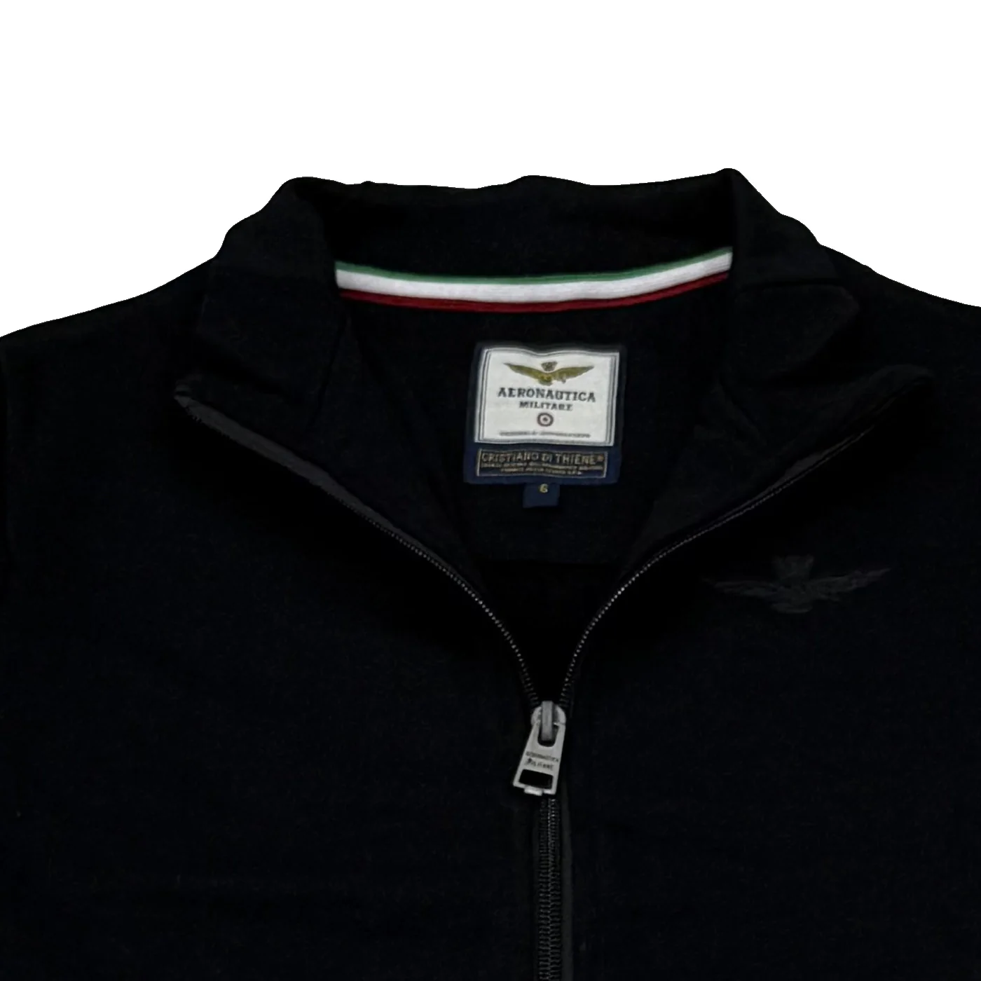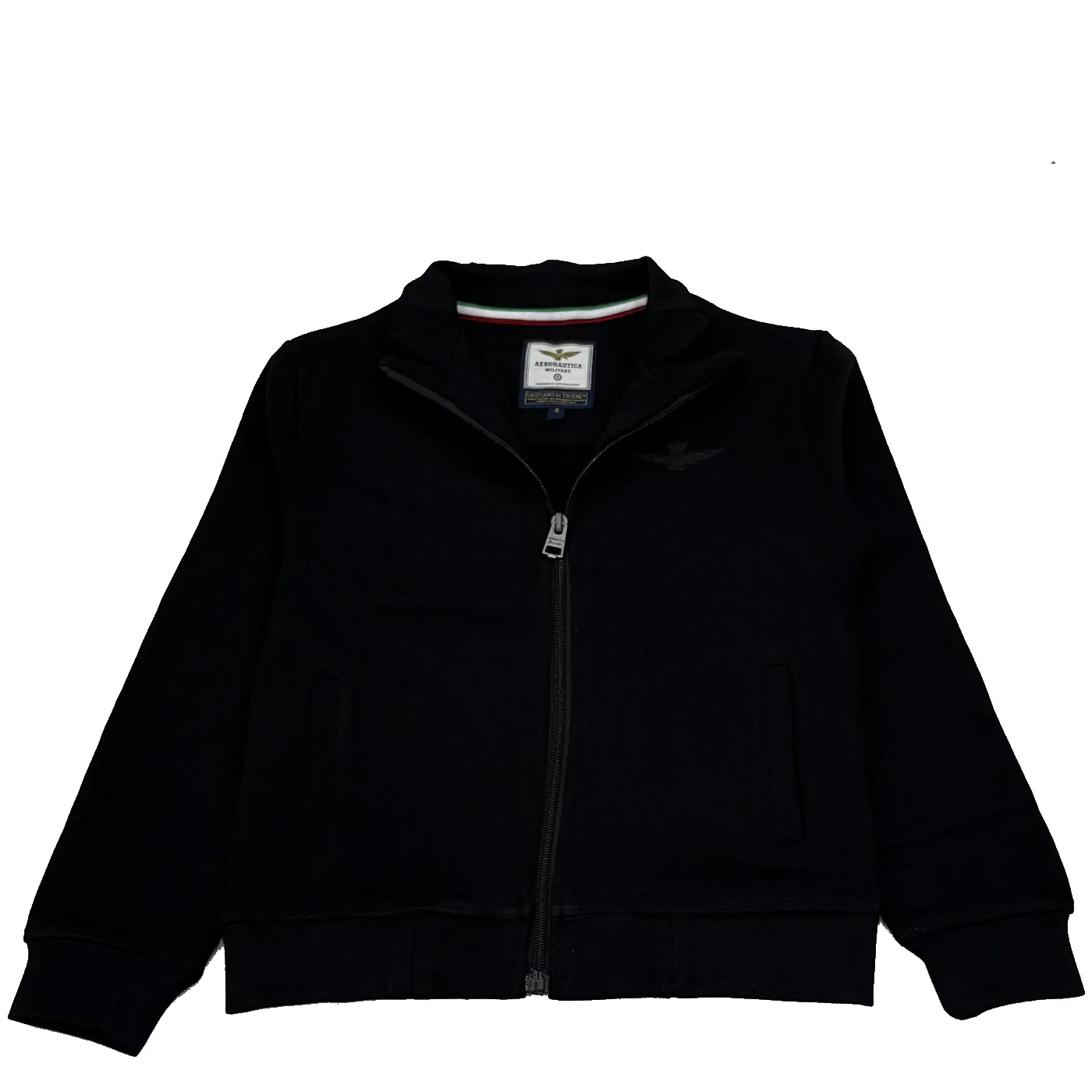 Aeronautica Militare felpa bambino in cotone garzato nera Chiusura con zip centrale Ricamo logo lato cuore Collo polsini e fondo a costeComposizione: 100% cotoneMade in India Collezione Continuativa Vestibilitร :Taglia Etร