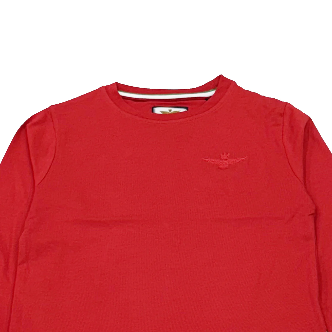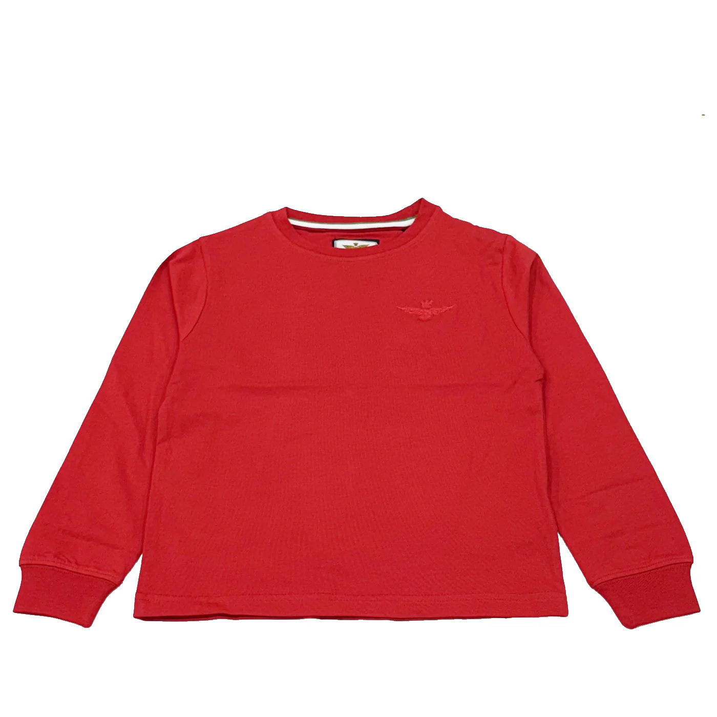 Aeronautica Militare t-shirt girocollo bambino in cotone rossa Maniche lunghe Ricamo logo lato cuore Polsini a costeComposizione: 94% cotone 6% elastanMade in IndiaCollezione Continuativa Vestibilitร :Taglia Etร