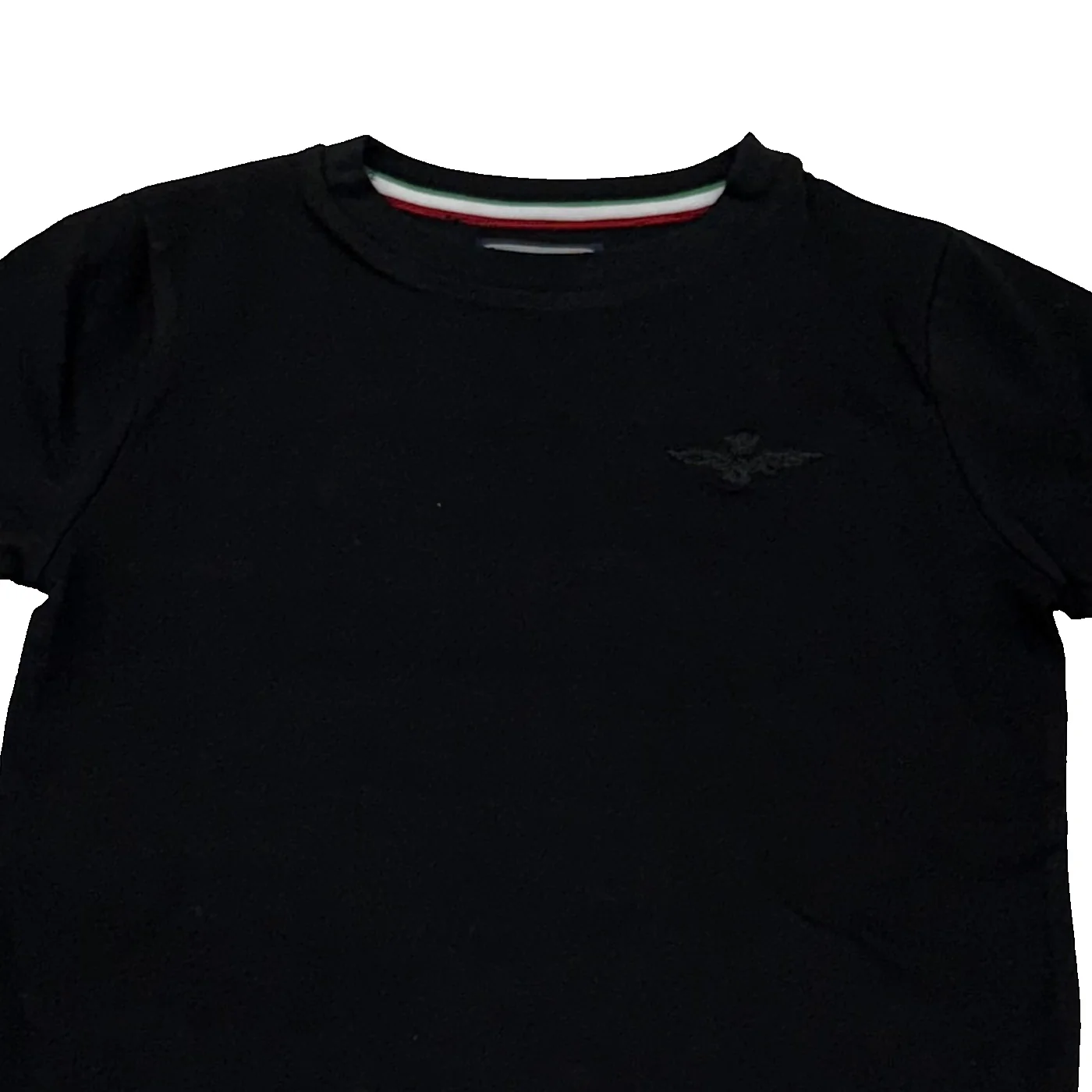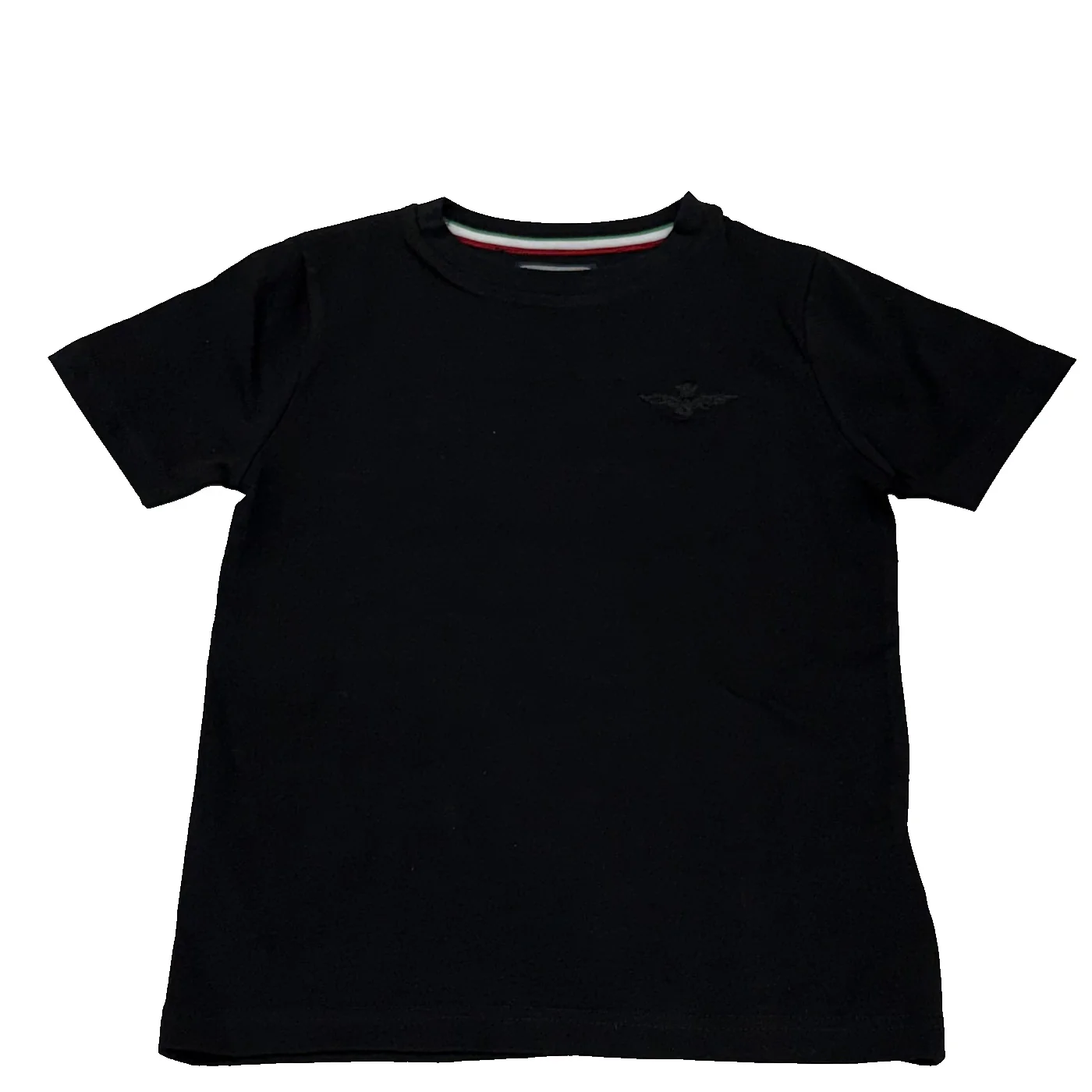 Aeronautica Militare t-shirt girocollo bambino in cotone nero Maniche corte Ricamo logo lato cuoreComposizione: 94% cotone 6% elastanMade in IndiaCollezione Continuativa Vestibilitร :Taglia Etร