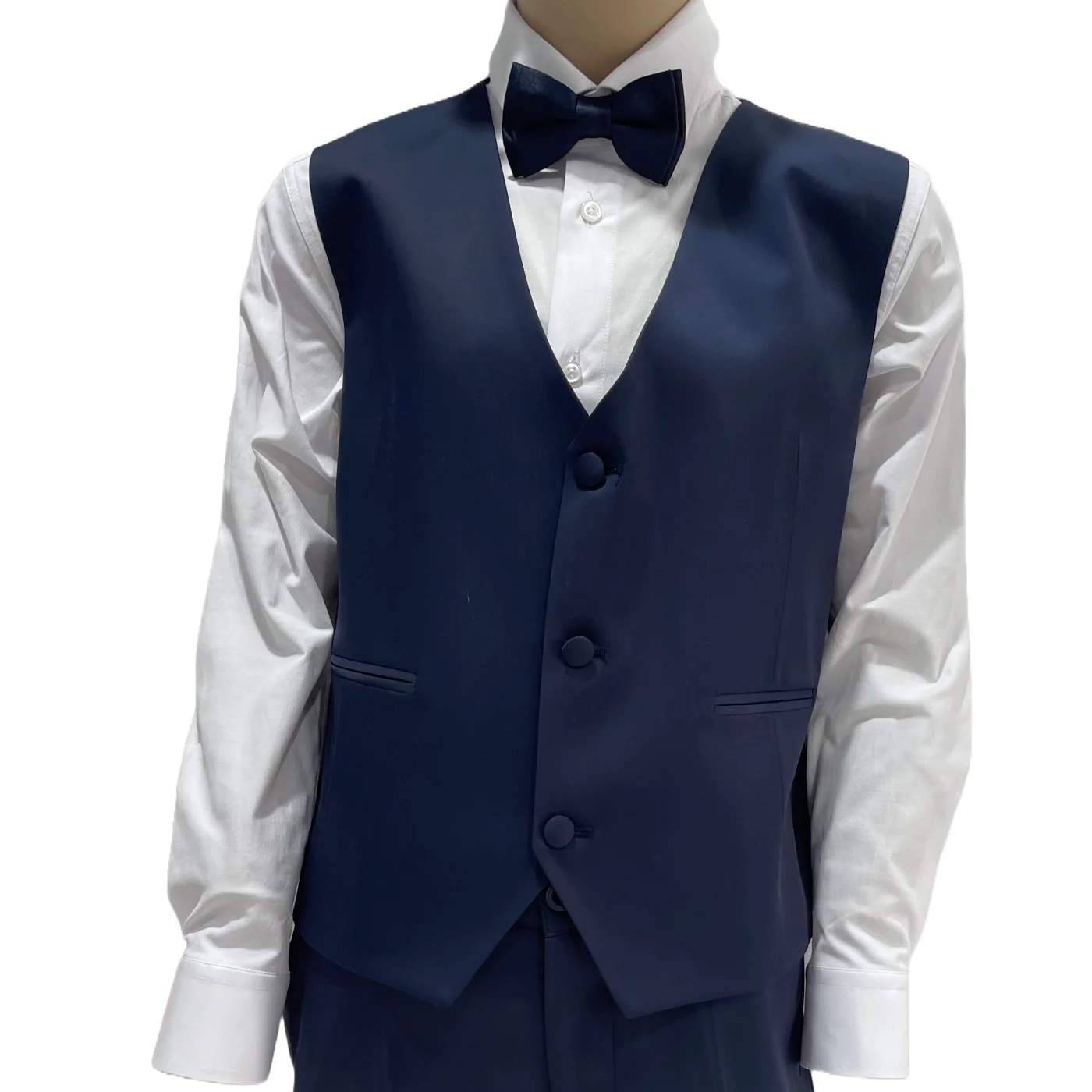 Composizione: camicia 97% cotone 3% lycra giacca, gilet, papillon, pantalone 60% poliestere 40% viscosa