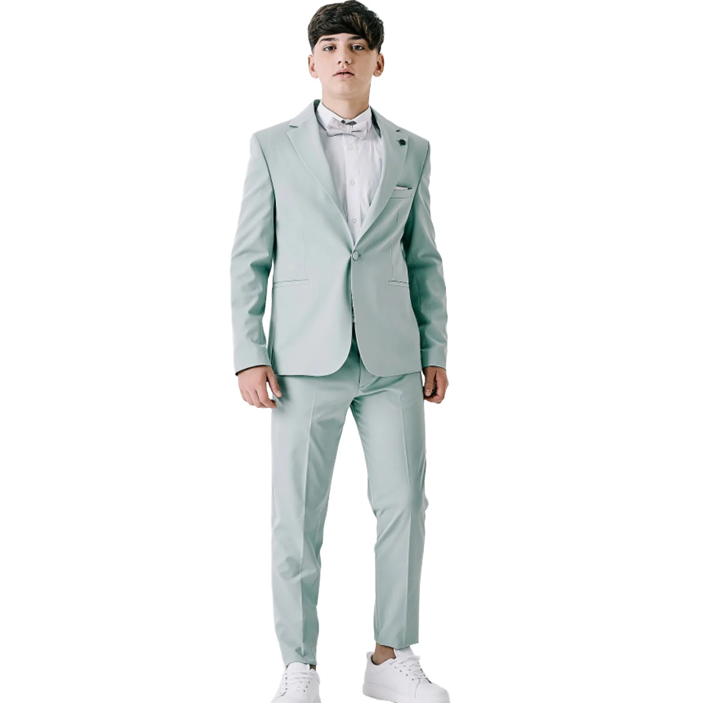 Alessandro Martinez completo quattro pezzi bambino salviaCamicia strech bianca Maniche lunghe Chiusura centrale con bottoni Giacca monopetto Chiusura a un bottone Scollo reverse Bottoni su polsini Tasche a filo frontali Taschino lato cuore con pochette Papillon rimovibile e regolabile Pantalone con pences Vita con passanti Chiusura con zip e bottone Tasche a filoComposizione: giacca e […]