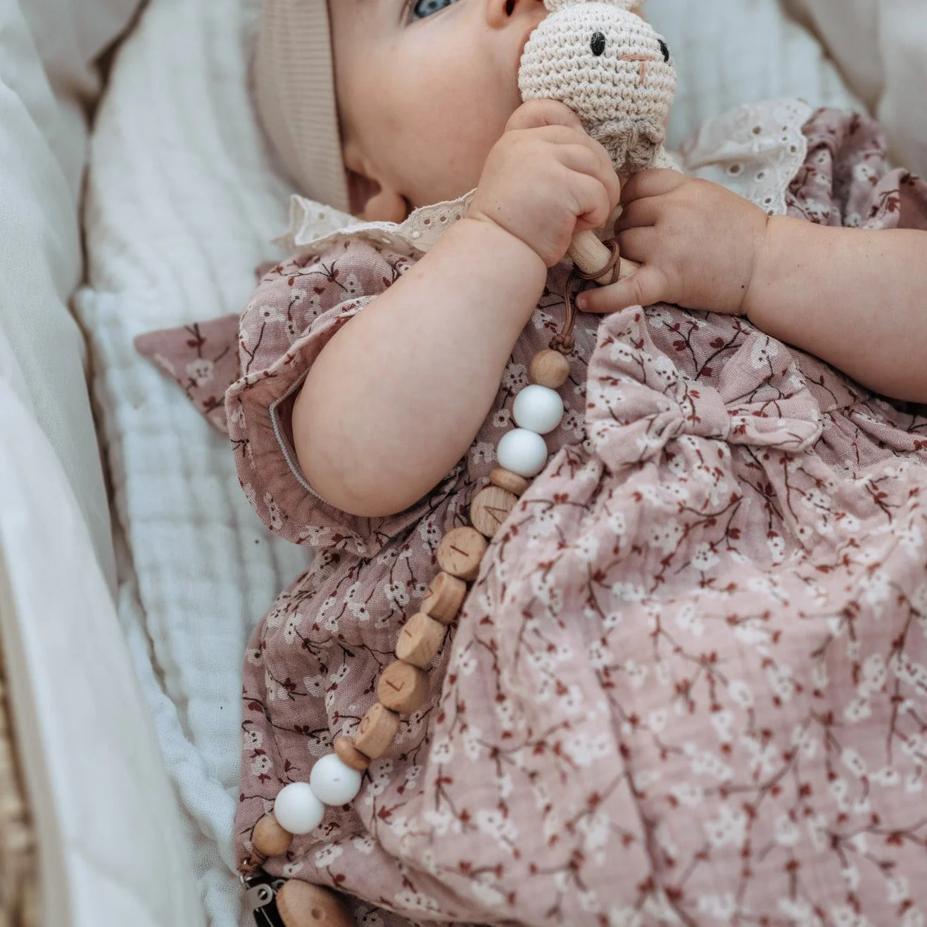 Un Sonaglio realizzati in legno di Faggio naturale e cotone all’uncinetto con cura e amore per fornire un bel suono morbido; sono molto leggeri e hanno una forma facile da afferrare per i piรน piccoli. ร indicato come Massaggiagengive per la dentizione ed รจ completamente sicuro per il tuo bambino essendo non tossico e privo di sostanze chimiche.