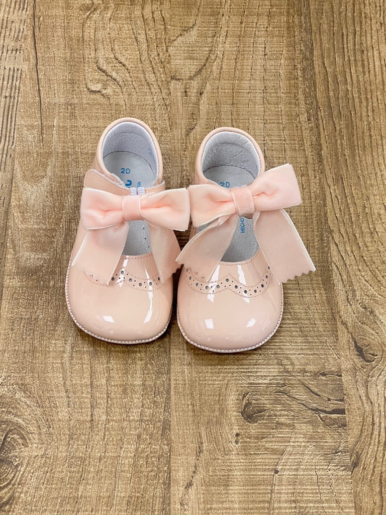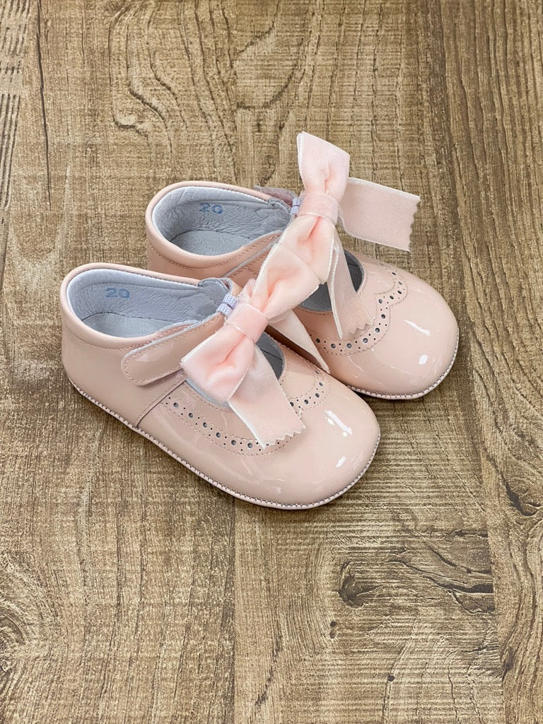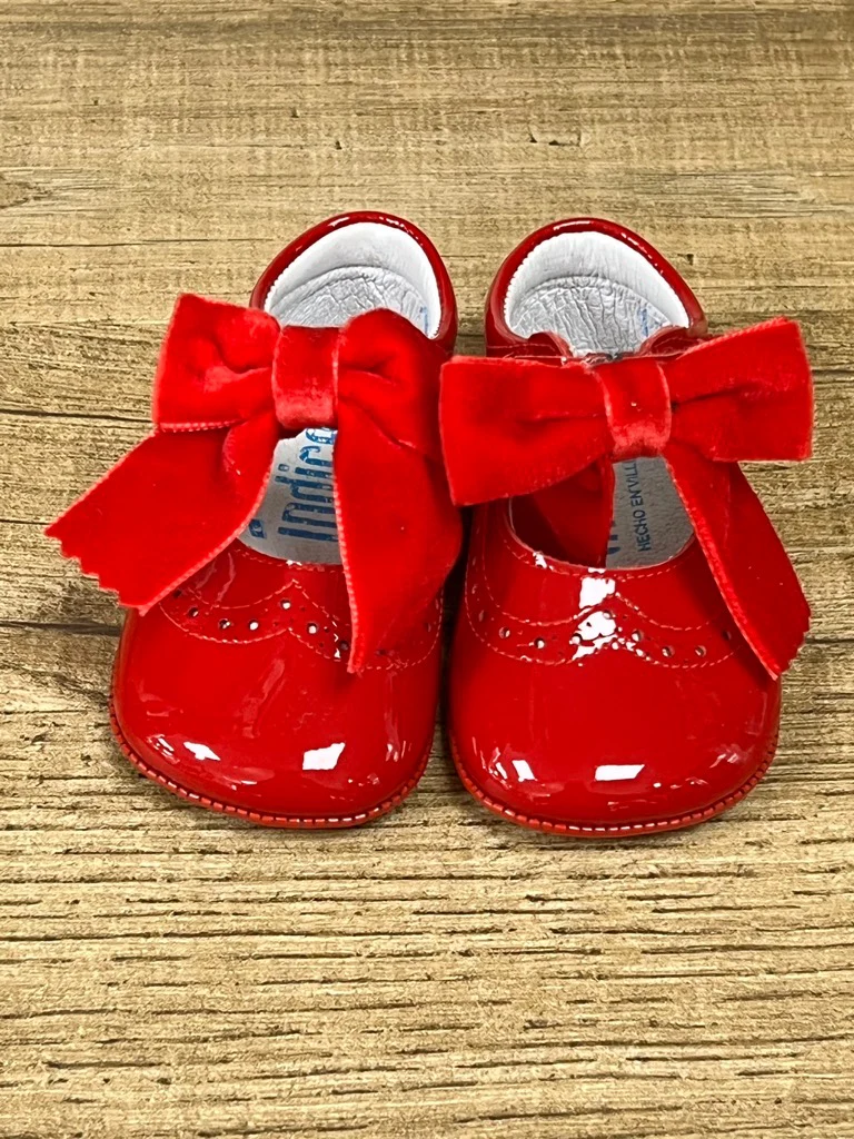 Scarpina lucida bambina con fiocchetto in velluto