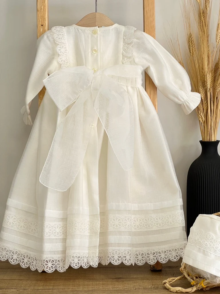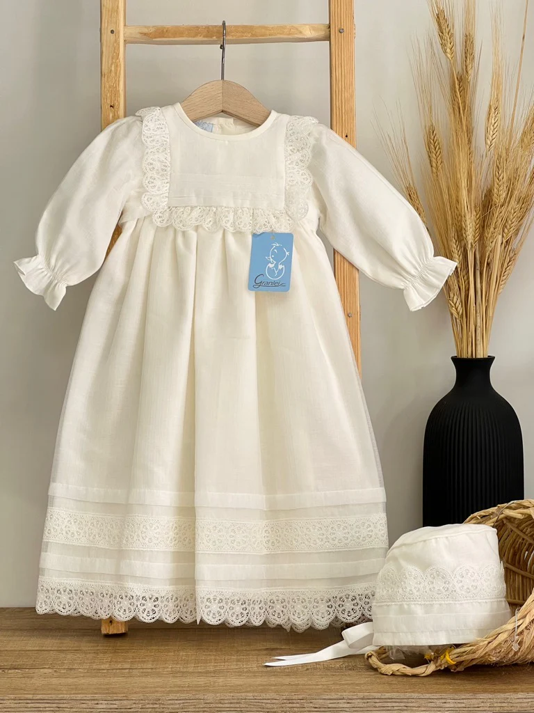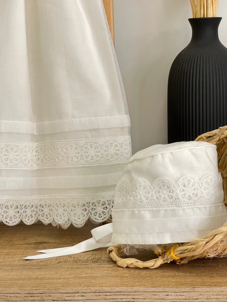 Abitino battesimale Abitino lungo in macrame e cuffietta
