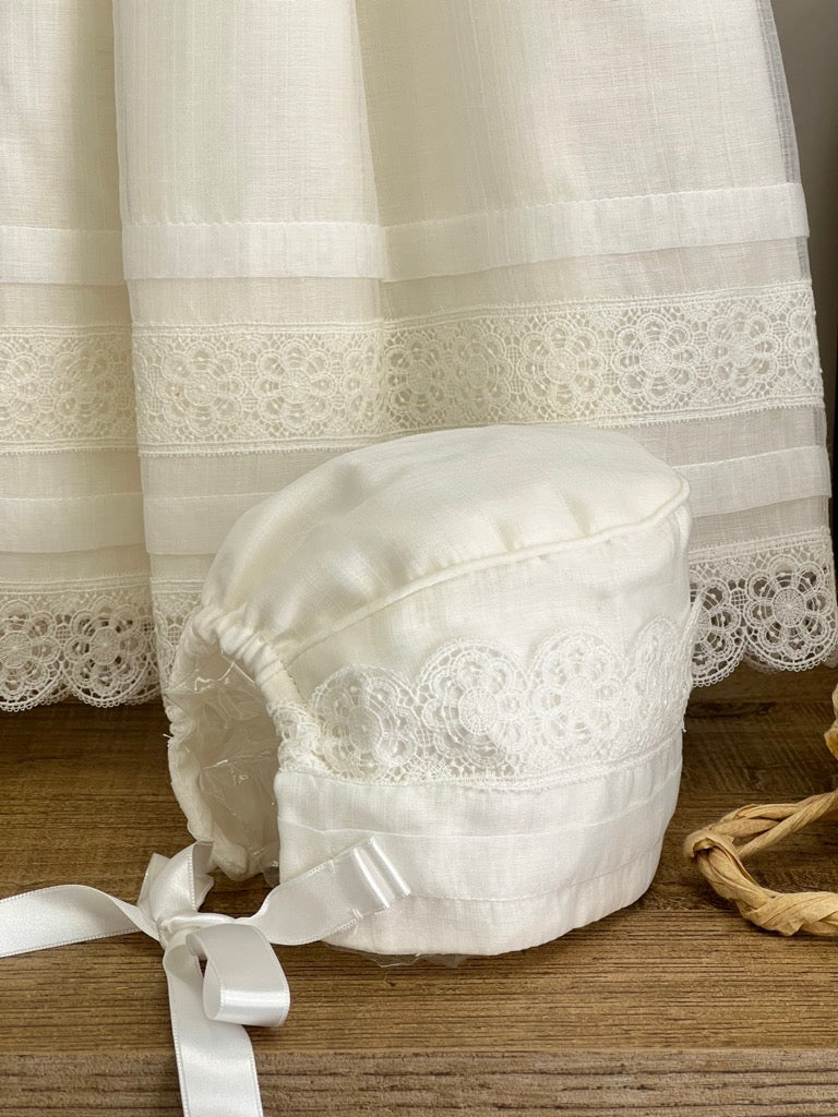 Abitino battesimale Abitino lungo in macrame e cuffietta Il bavaglino va acquistato a parte