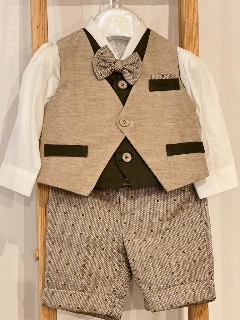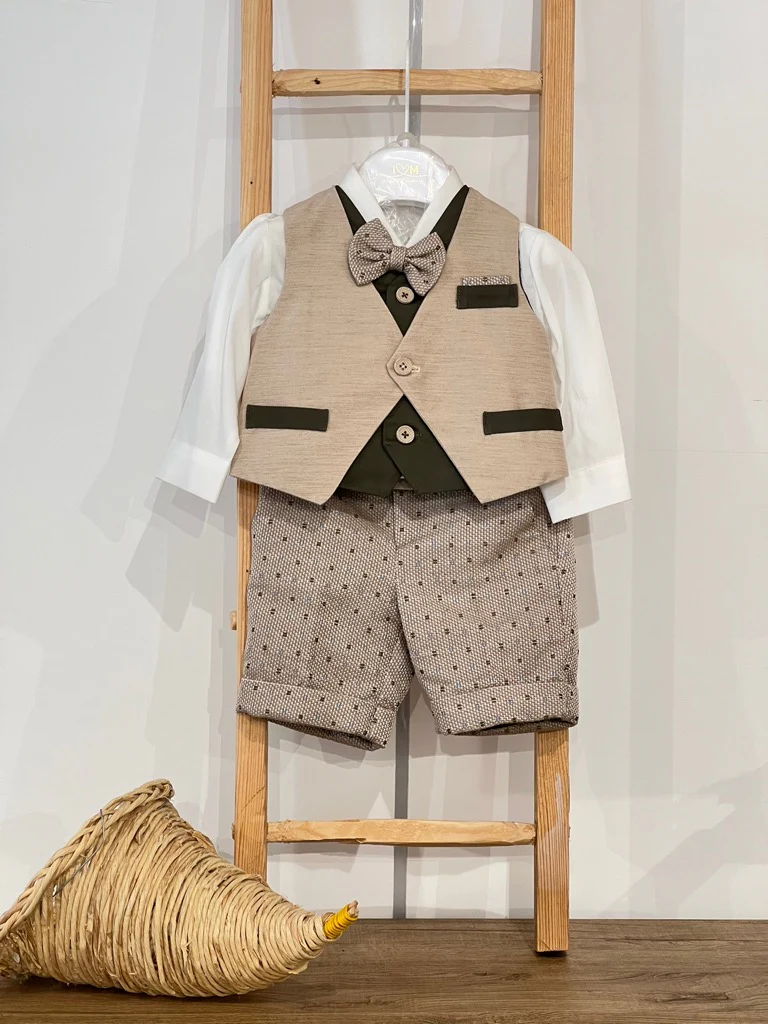 Completo Battesimale bimbo composto da Gilet pantalone camicia papillon
