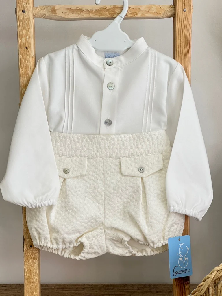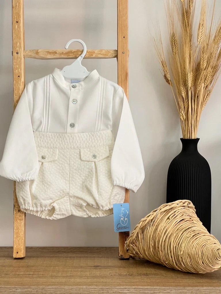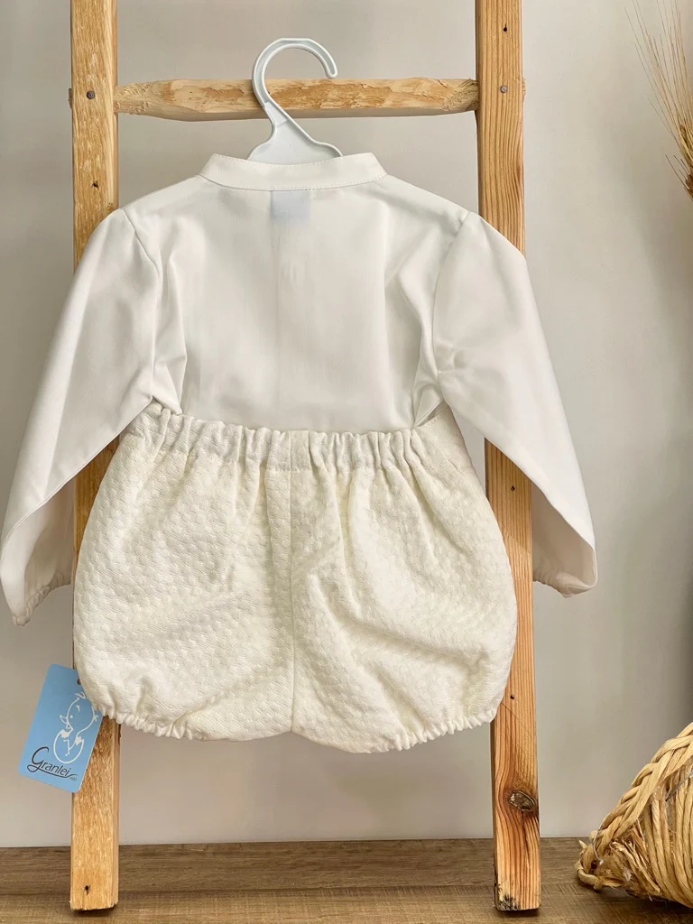 Completino battesimaleCamicia e pantaloni lavorati100% Cotone