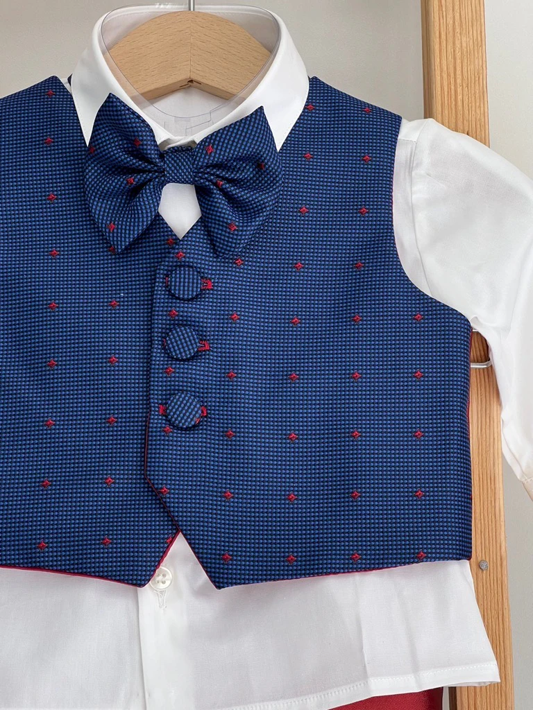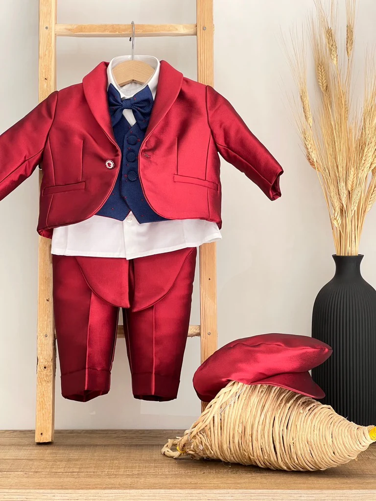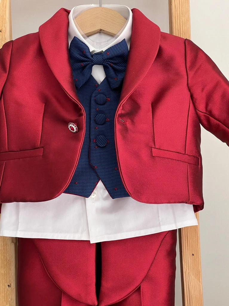 Completo Battesimale Bimbo. Giacca, Camicia, Panciotto, Pantalone, Papillon, Coppola