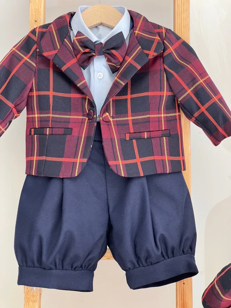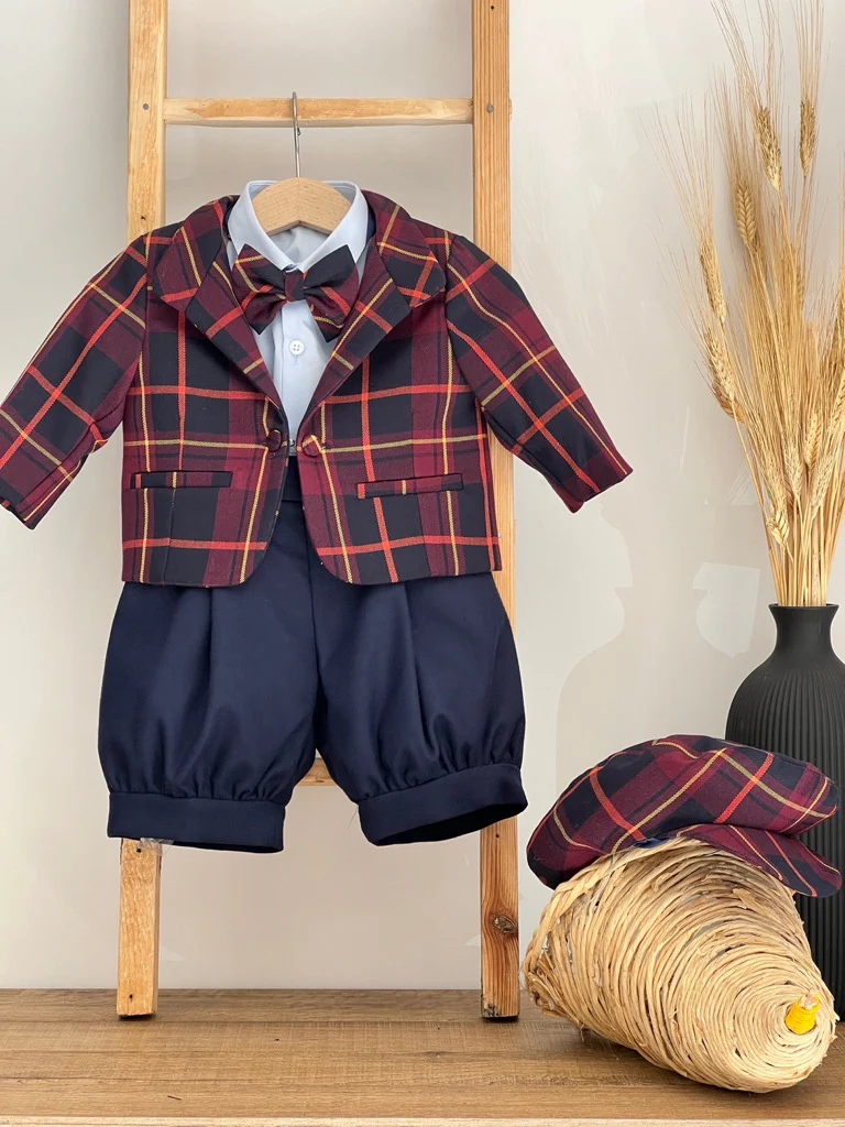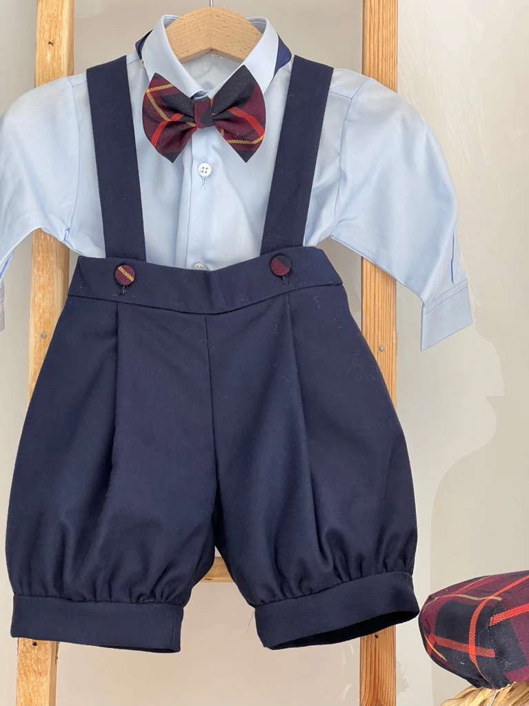 Completo Battesimale Bimbo. Giacca, Camicia, Salopette Papillon, Coppola