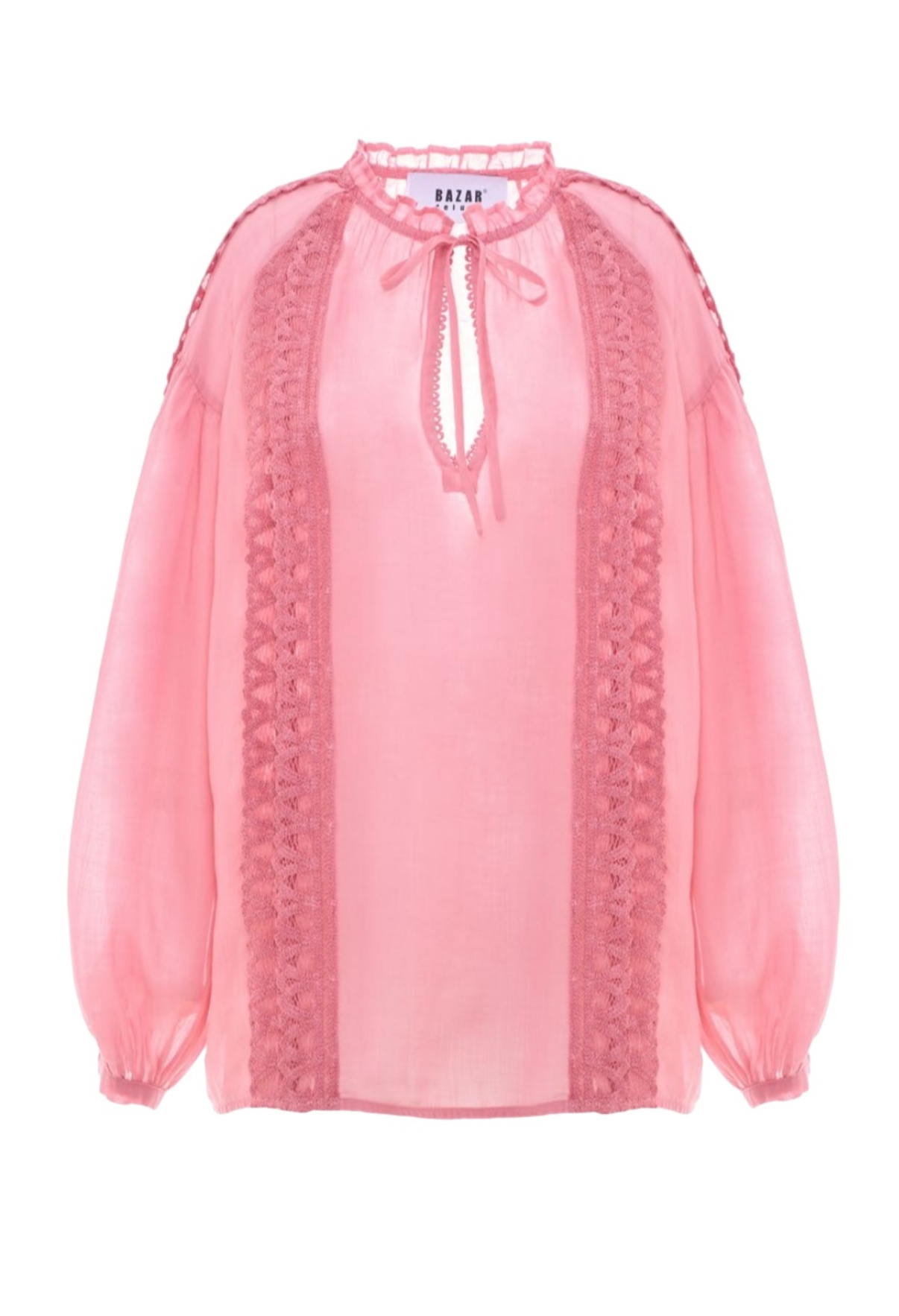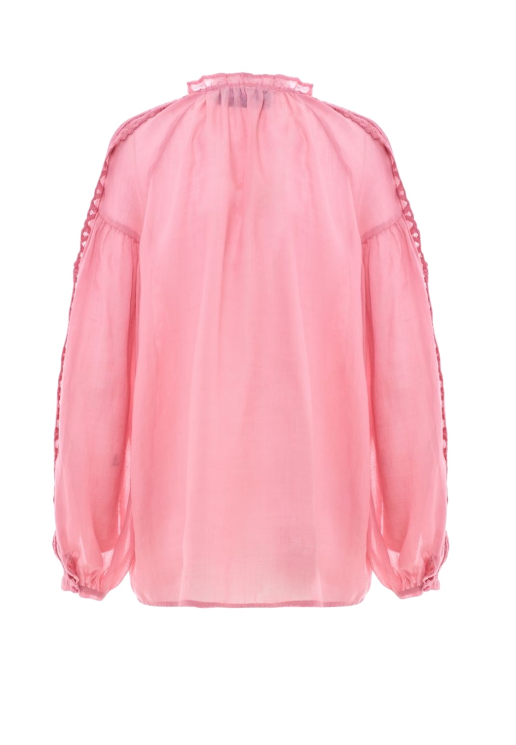 Camicia ramie tinto in capo rosa candy con dettagli di pizzi.