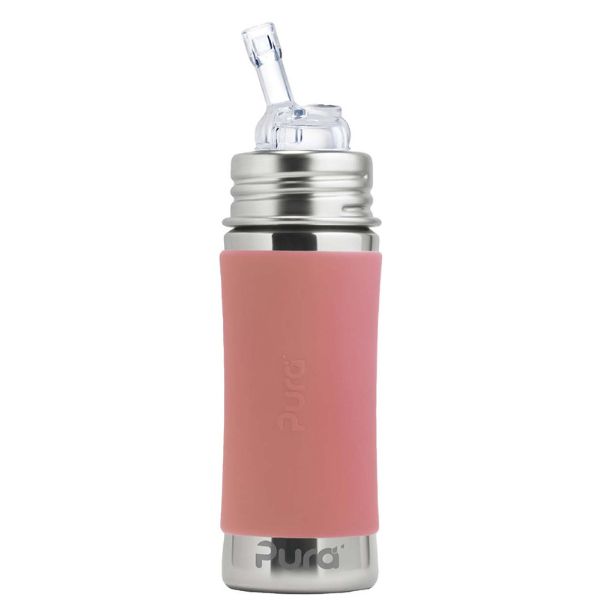 Da biberon a bottiglia semplicemente cambiando la cannuccia con un tappo sport. Oppure può diventare un contenitore per gli snack sostituendo la tettarella con un altro accessorio in silicone Pura.