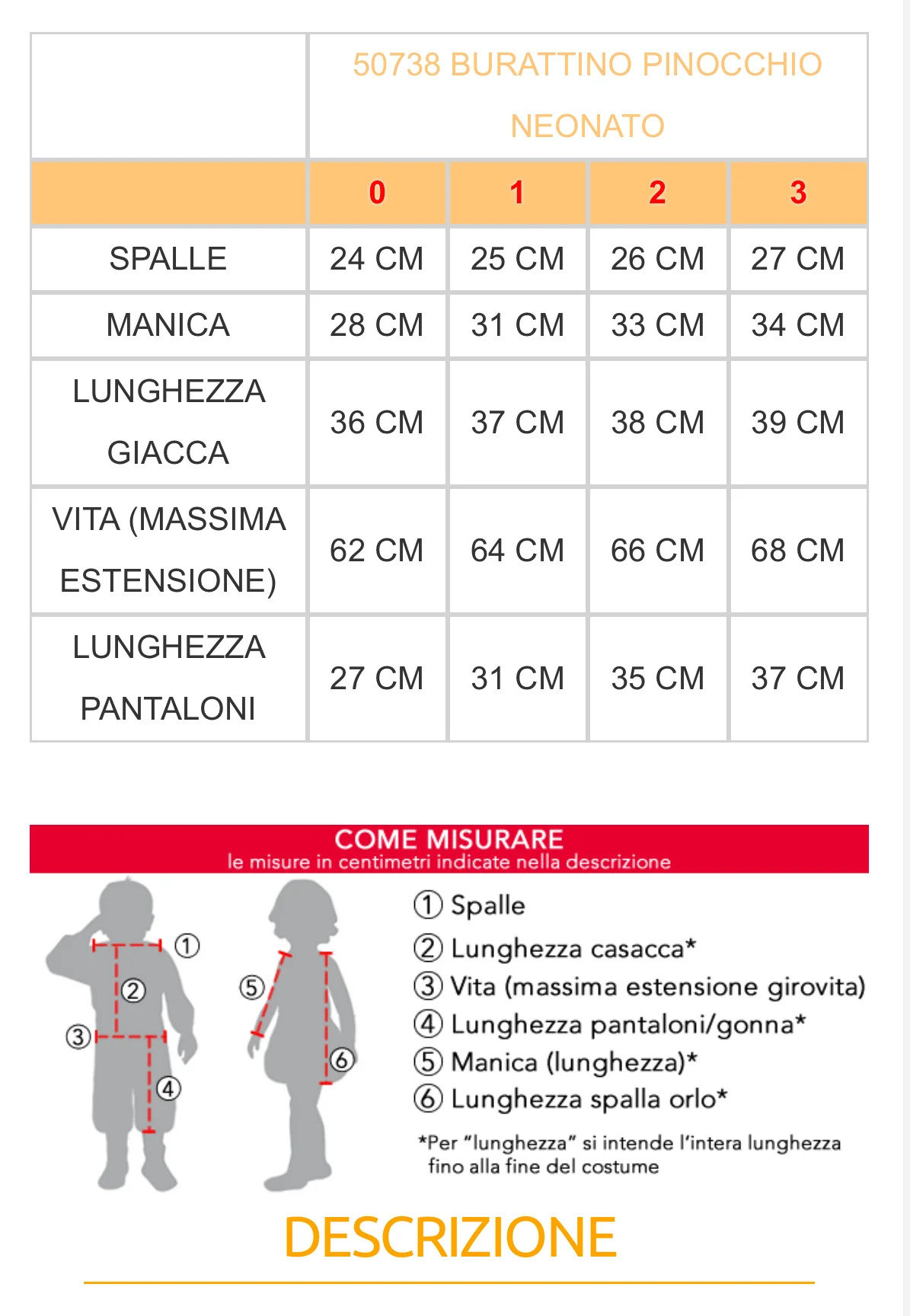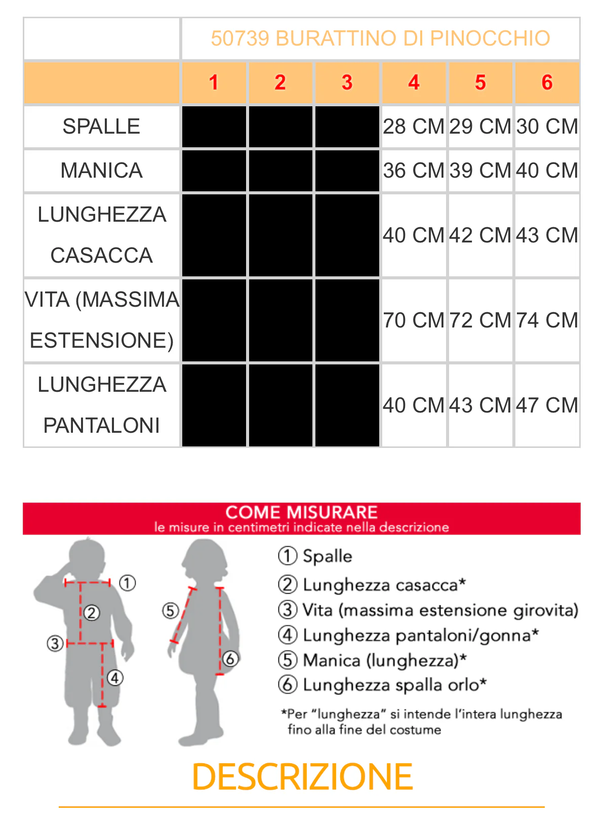 Costume carnevale bambino veneziano costume carnevale Bambino 50738Burattino di pinocchio