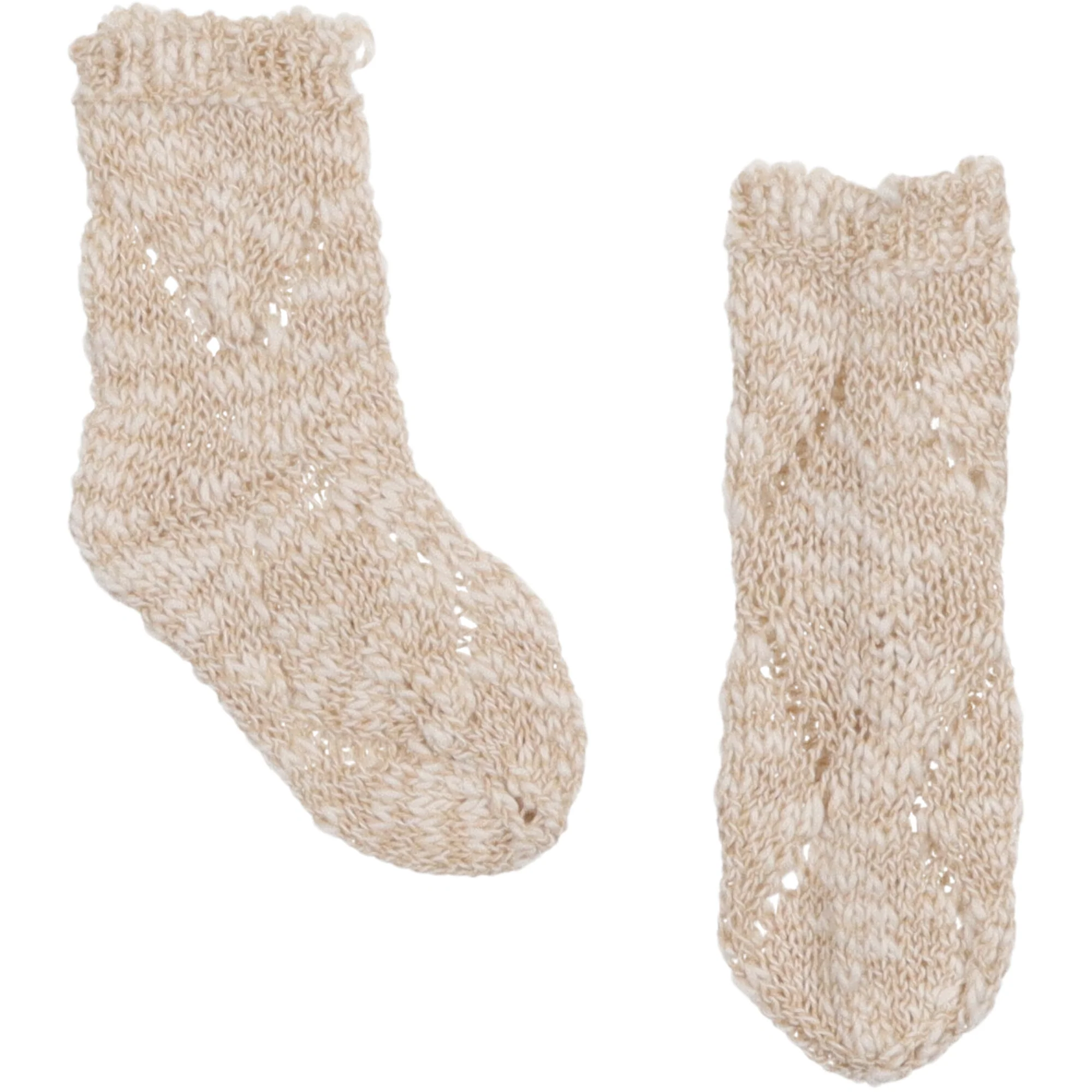 Calzettone traforato in filo di cotone colore beige melangรฉ.
