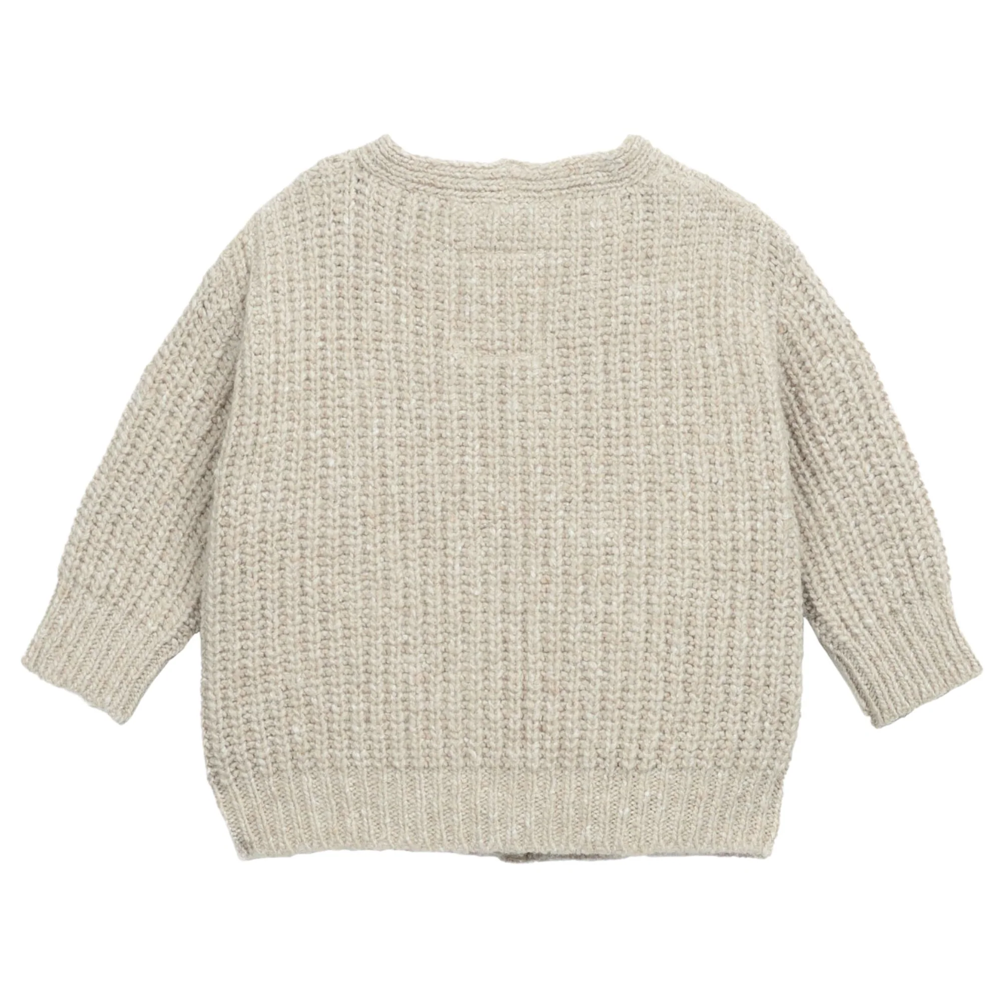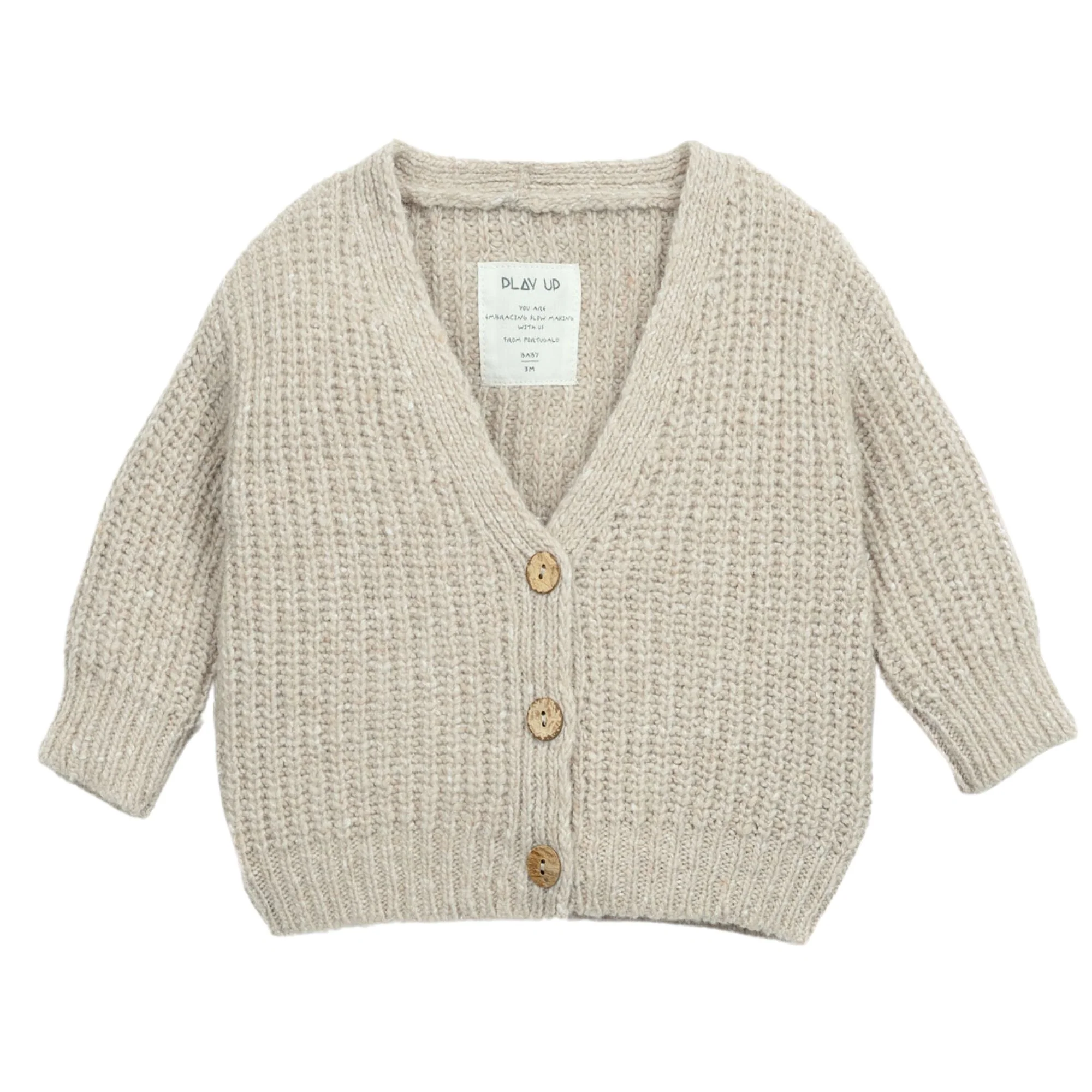 Cardigan in maglina lavorata misto lana, collo a V e apertura sul davanti con bottoni in cocco.