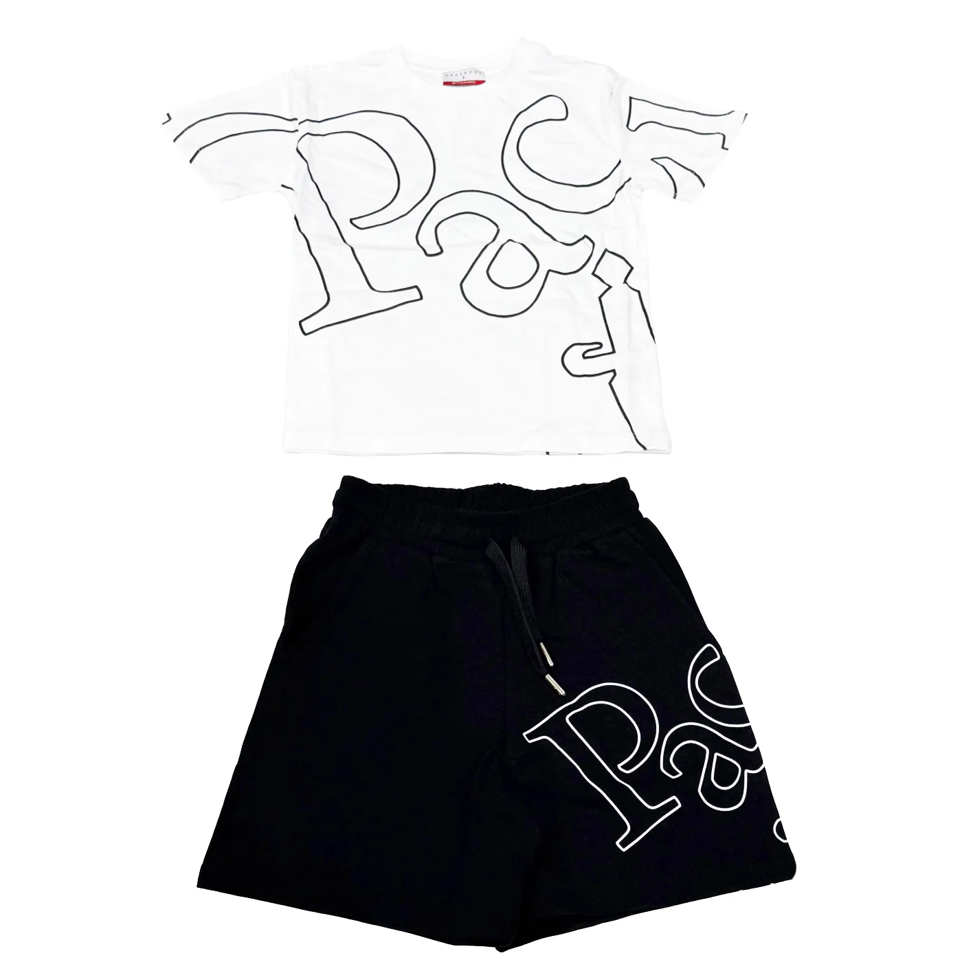 Cesare Paciotti completo due pezzi teen in cotone bianco neroT-shirt girocollo Maniche corte Logo frontale Bermuda in cotone garzato Vita elastica con coulisse regolabileTasche a filo Logo su gambaComposizione: 100% cotoneMade in IndiaCollezione Primavera Estate Vestibilitร :Taglia Etร