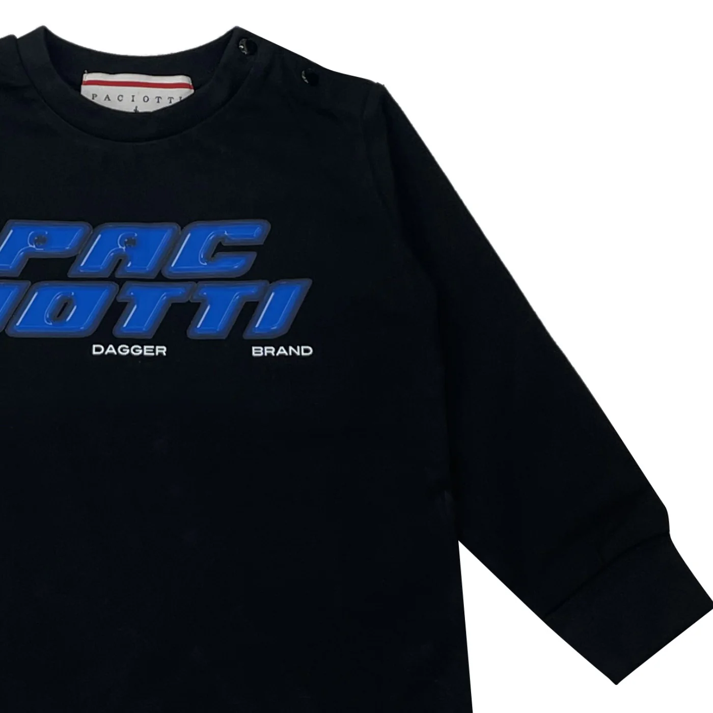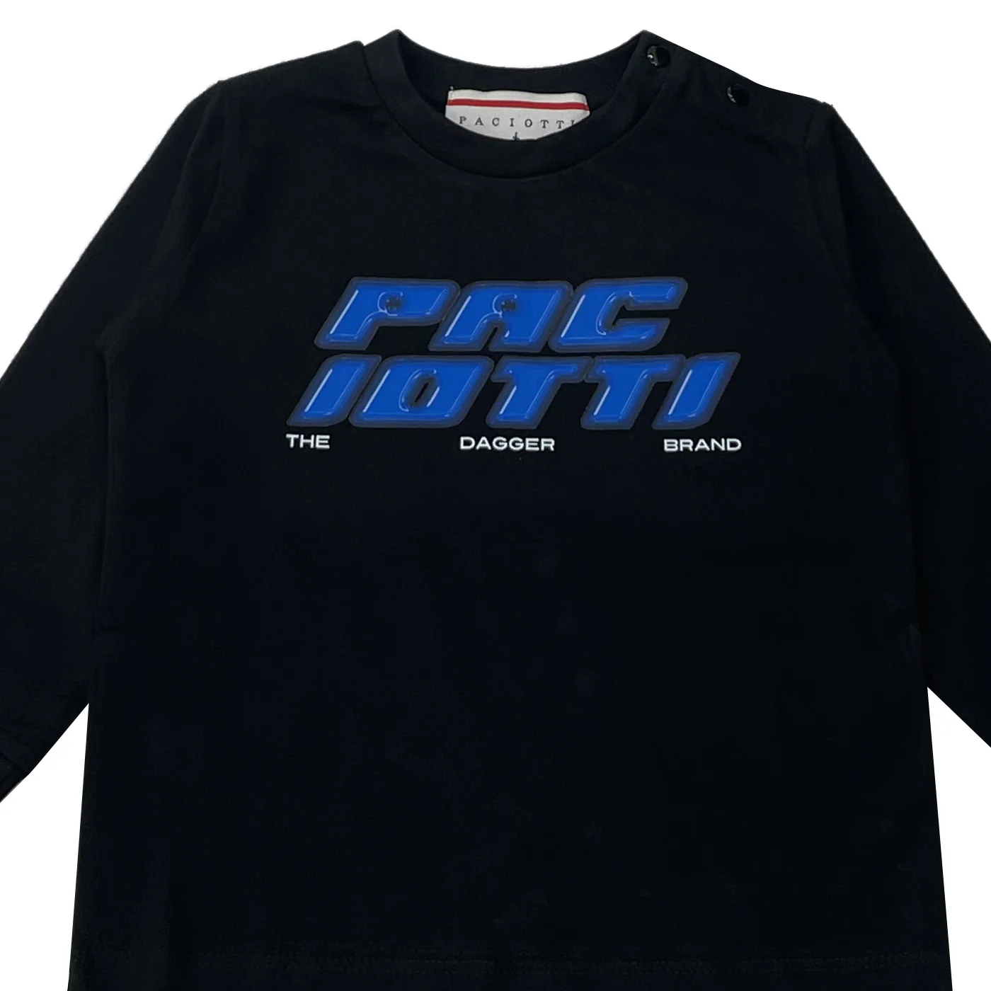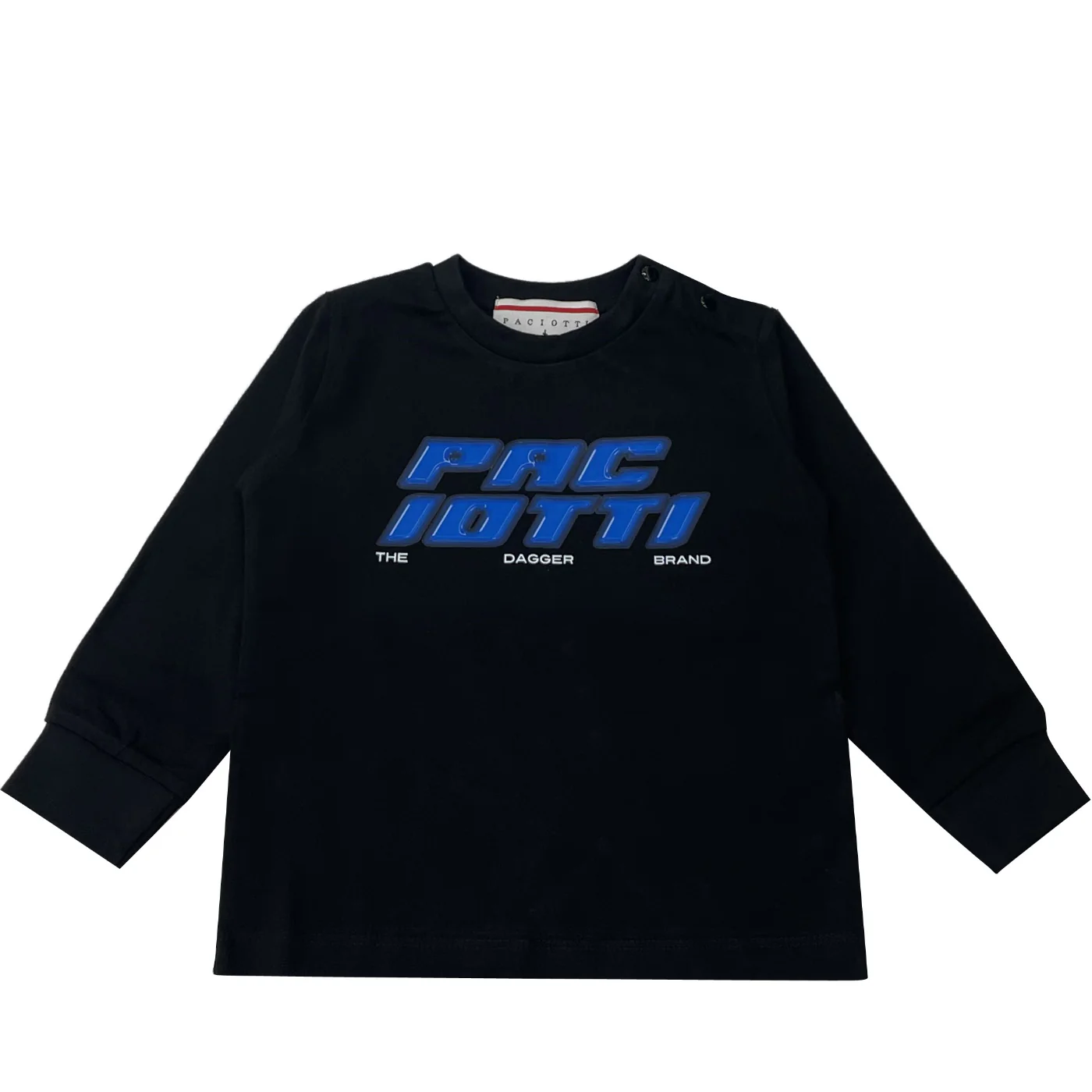 Cesare Paciotti t-shirt girocollo neonato cotone nera Maniche lunghe con polsini a coste Stampa logo frontaleChiusura su spalla con bottoni a pressioneComposizione: 100% cotoneMade in IndiaCollezione Autunno Inverno Vestibilitร :Taglia Etร