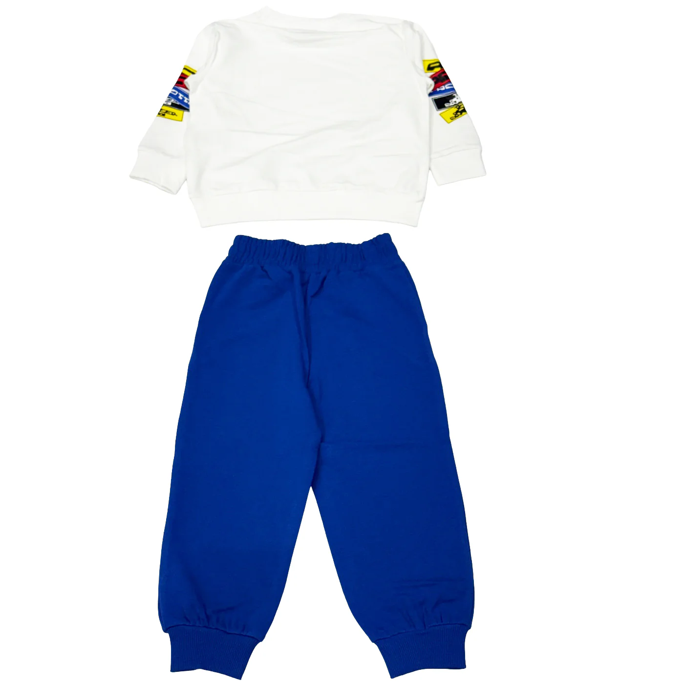 Cesare Paciotti due pezzi tuta bambino in cotone garzato bianca blu royal