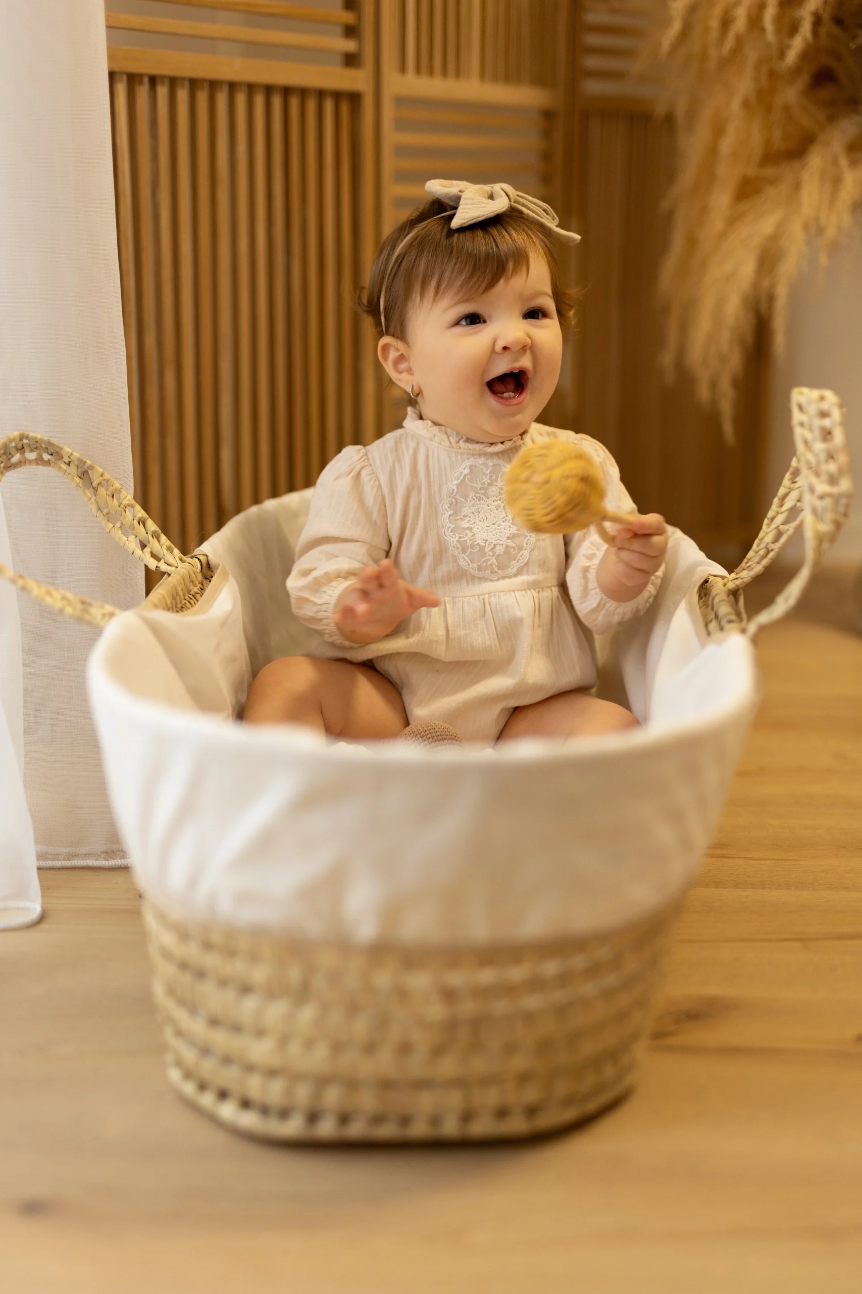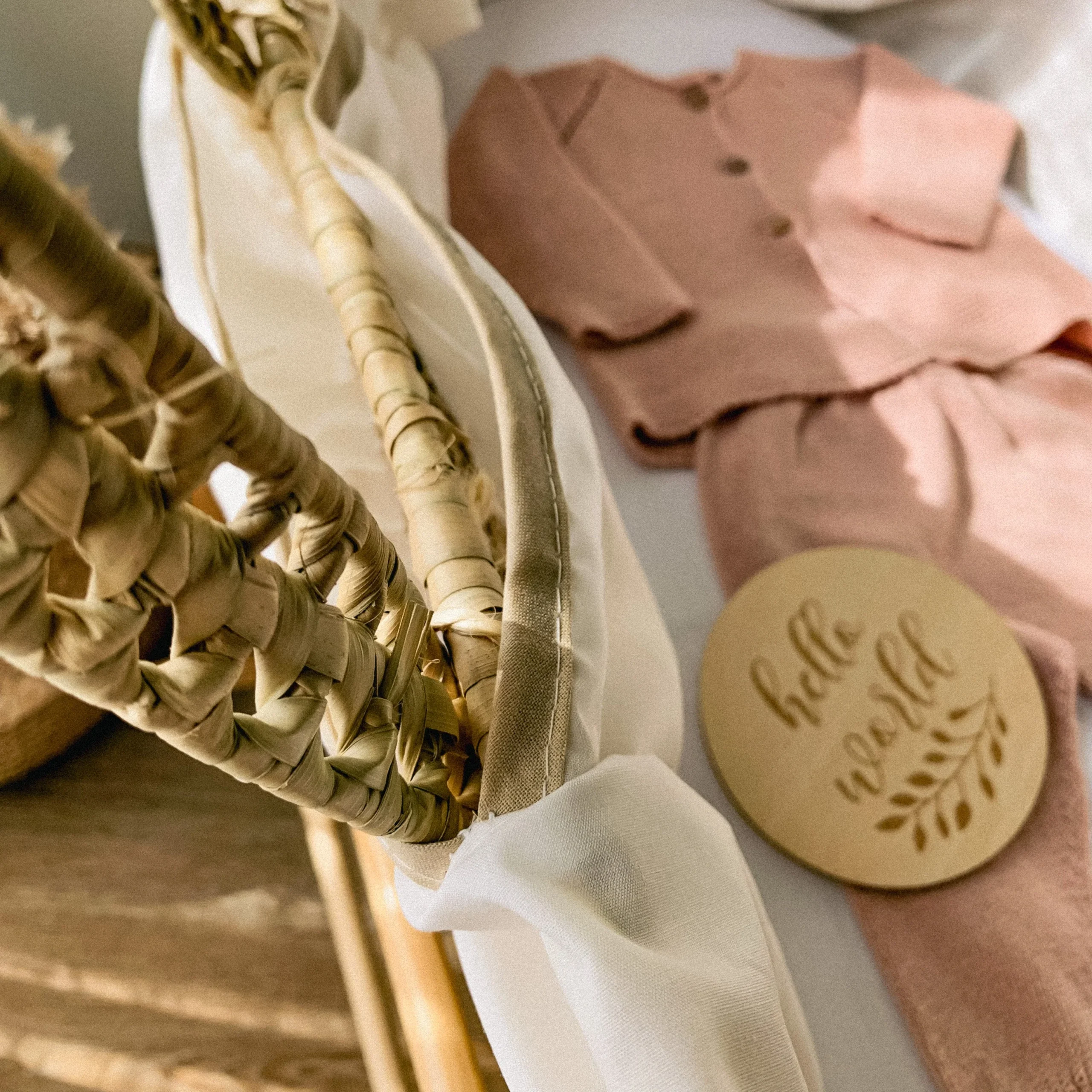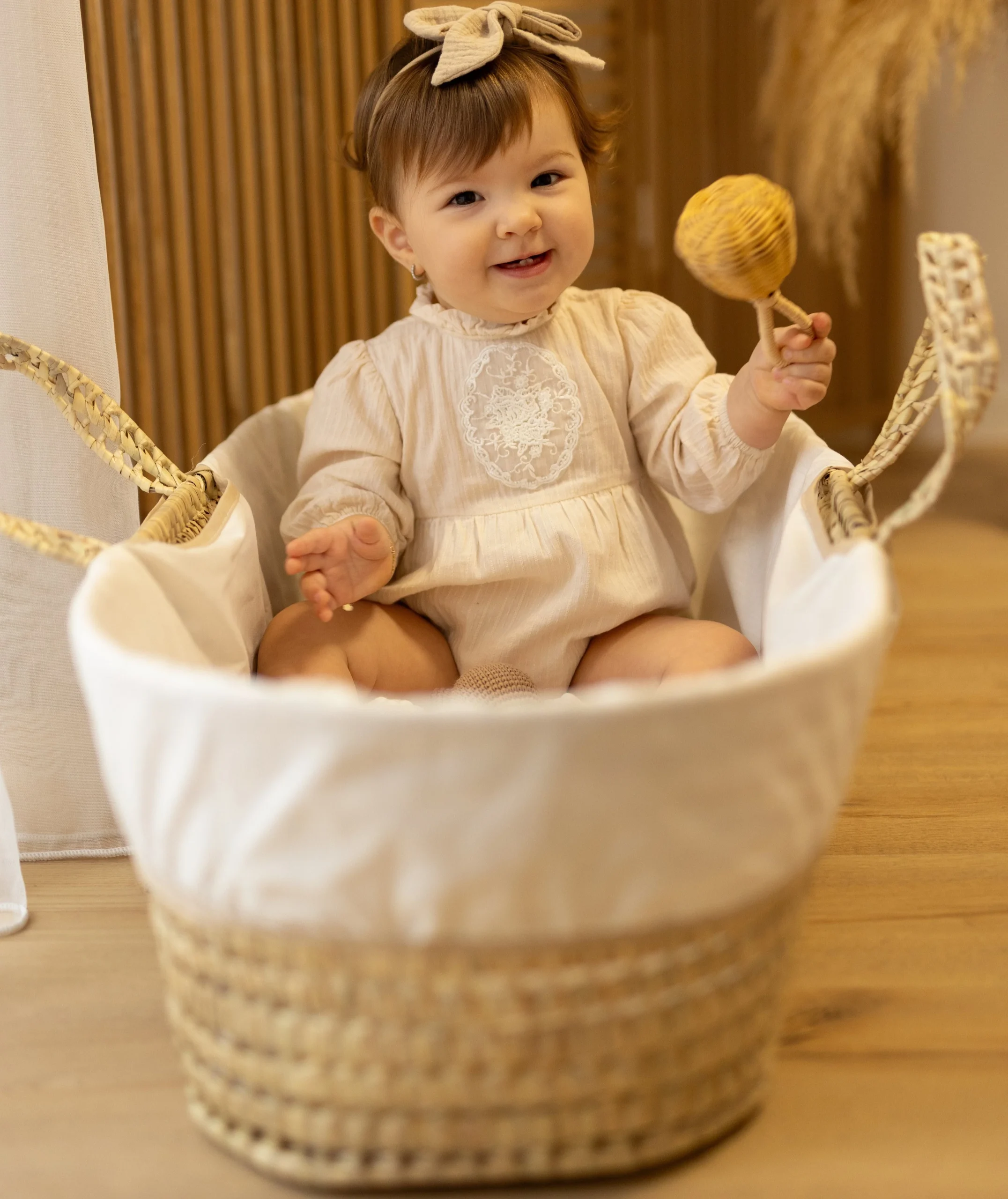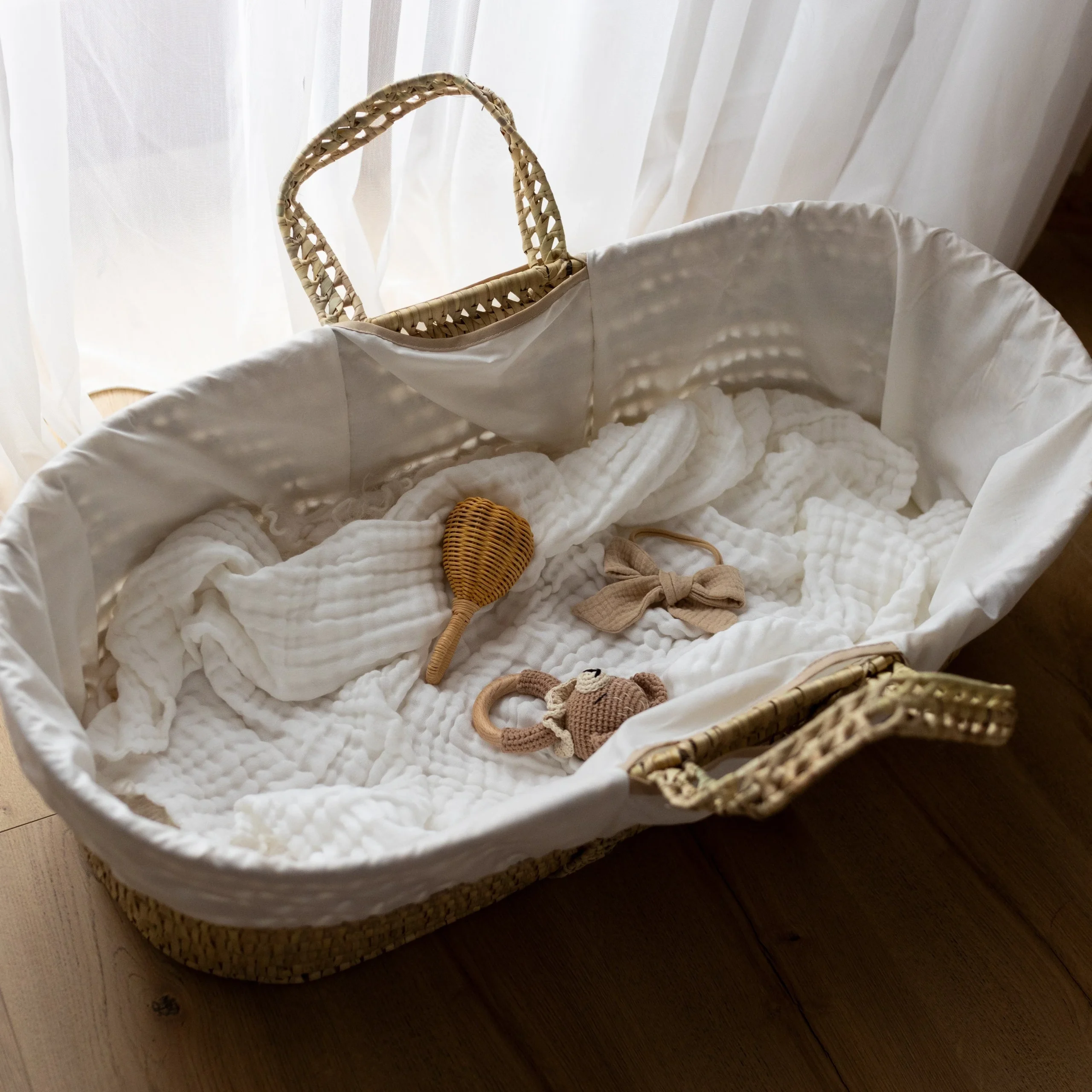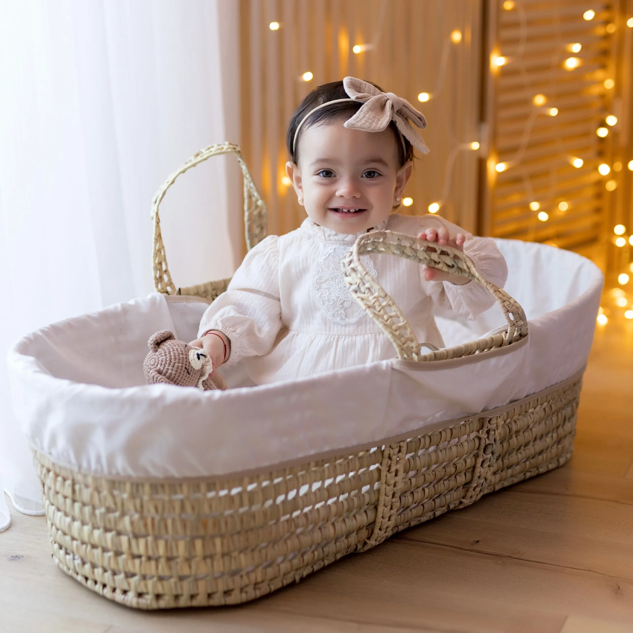 Cesta Portabebè intrecciata a mano con foglie di palma.