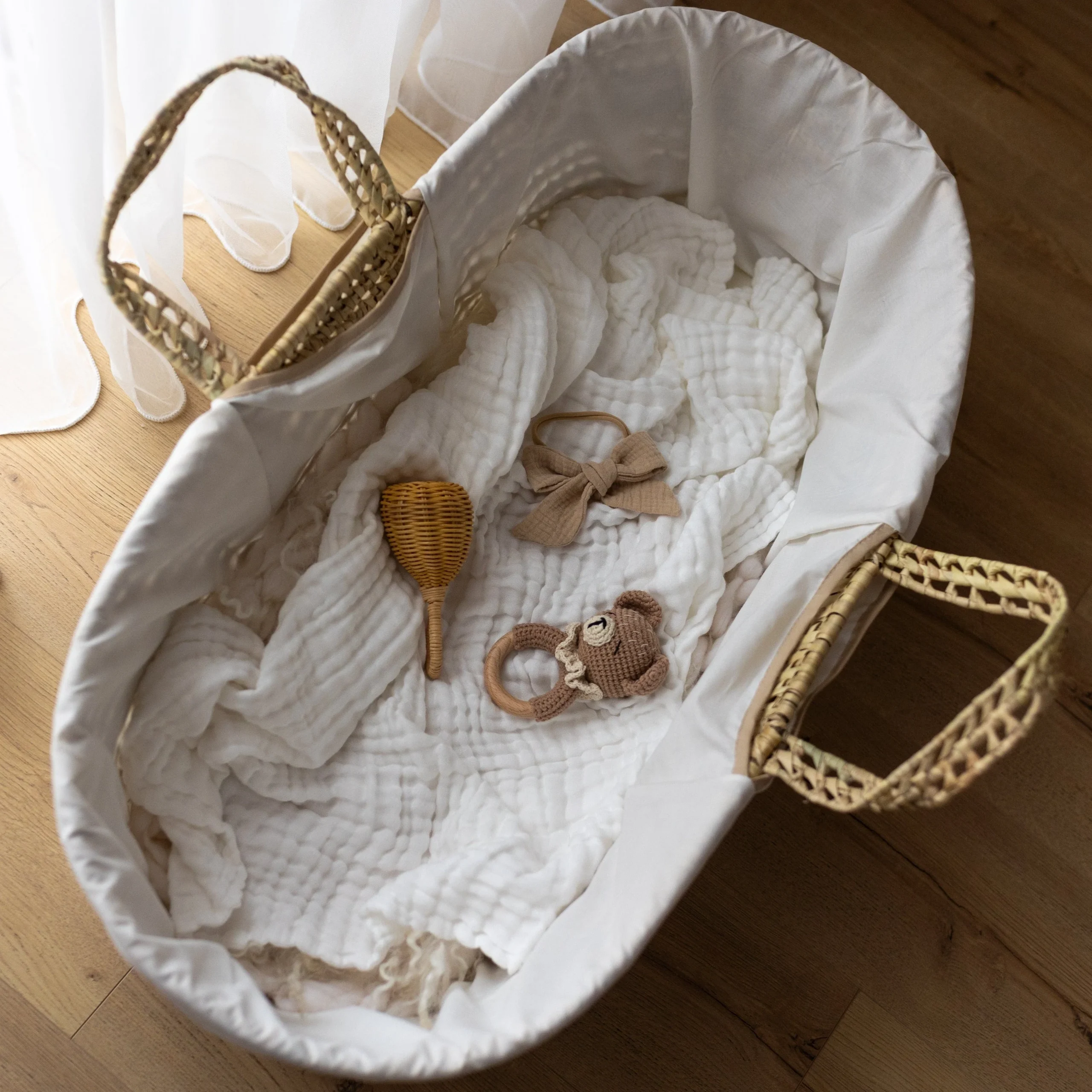 Cesta Portabebè intrecciata a mano con foglie di palma. 1 Cesta 1 Rivestimento 1 Materasso e Fodera in Cotone Una comoda cesta portatile davvero originale e pratica, progettata per il tuo bambino per dormire in tranquillità. La cesta è dotata di due comode e pratiche maniglie per essere spostata facilmente da una stanza all’altra per […]