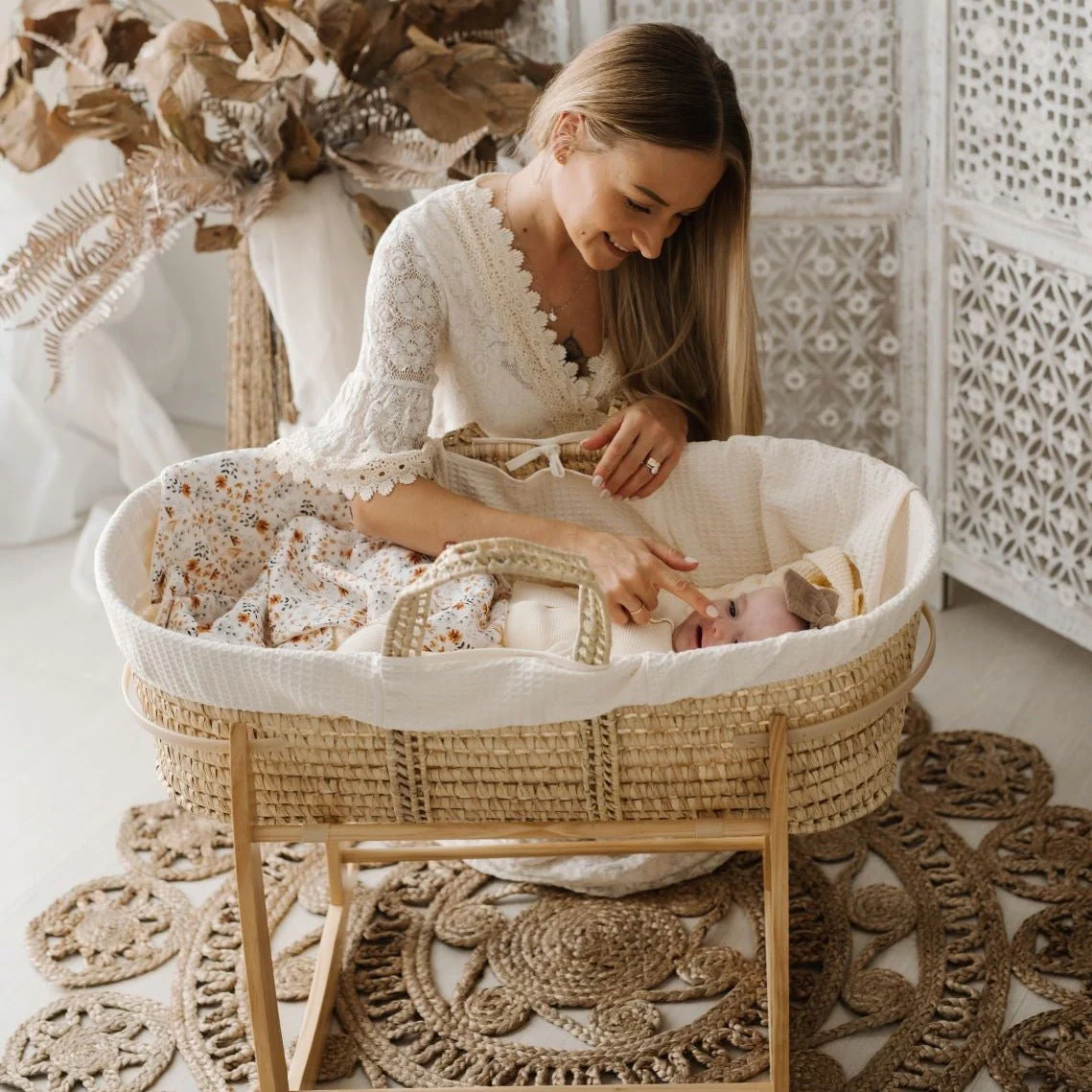 Questa Cesta Portabebè ha il rivestimento in waffle super morbido di cotone perfetto per la pelle delicata del bambino e creano un accogliente spazio per dormire traspirante per il tuo bambino.