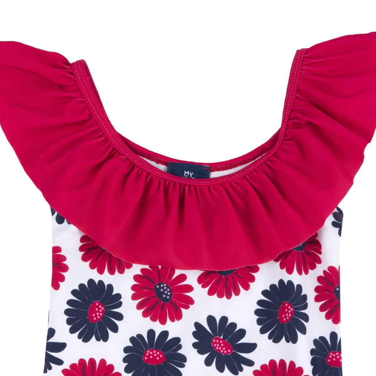 Chicco costume intero con balza bambina bianco fantasia fiori