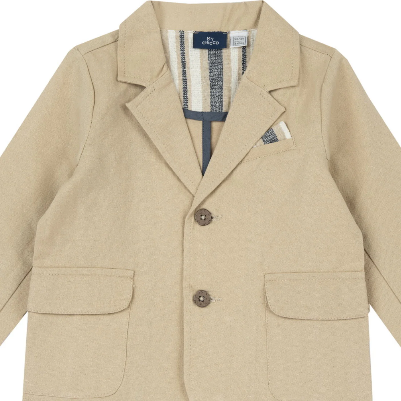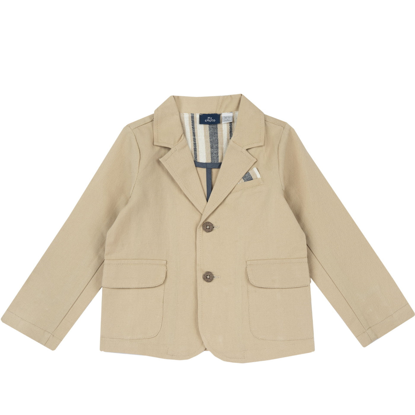Chicco giacca bambino in misto lino beige Scollo reverse Chiusura a due bottini Tasche con patta frontaliComposizione: 70% cotone 30% linoMade in IndiaCollezione Primavera Estate Vestibilitร :Taglia Etร