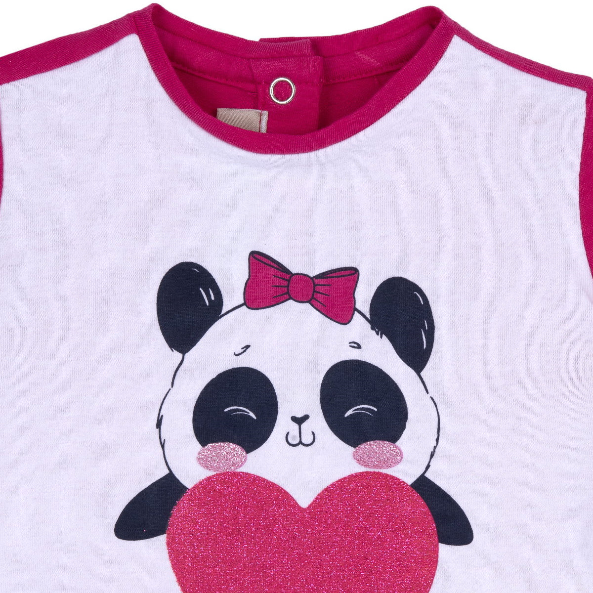Chicco t-shirt girocollo neonata cotone bianco e fuxia Maniche corte Chiusura con bottoni a pressione sul retro Stampa frontaleComposizione: 95% cotone 5% elastan Made in BangladeshCollezione Primavera Estate Vestibilitร :Taglia Etร
