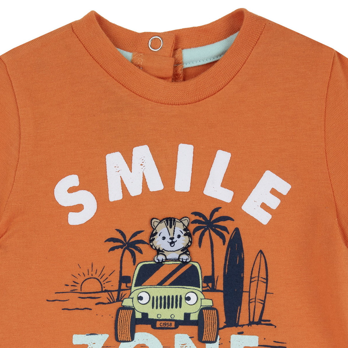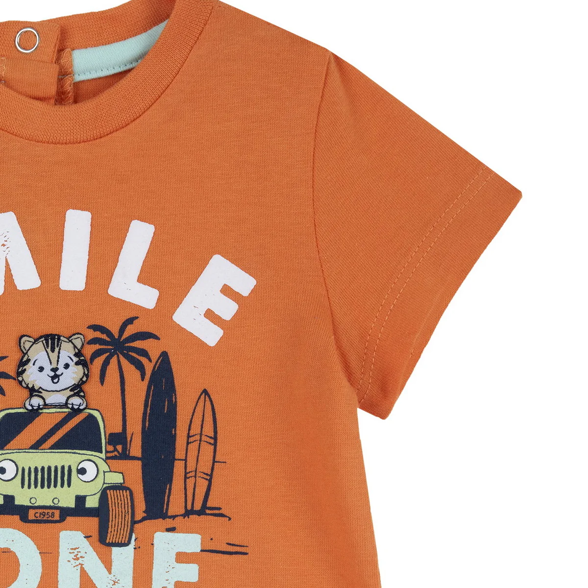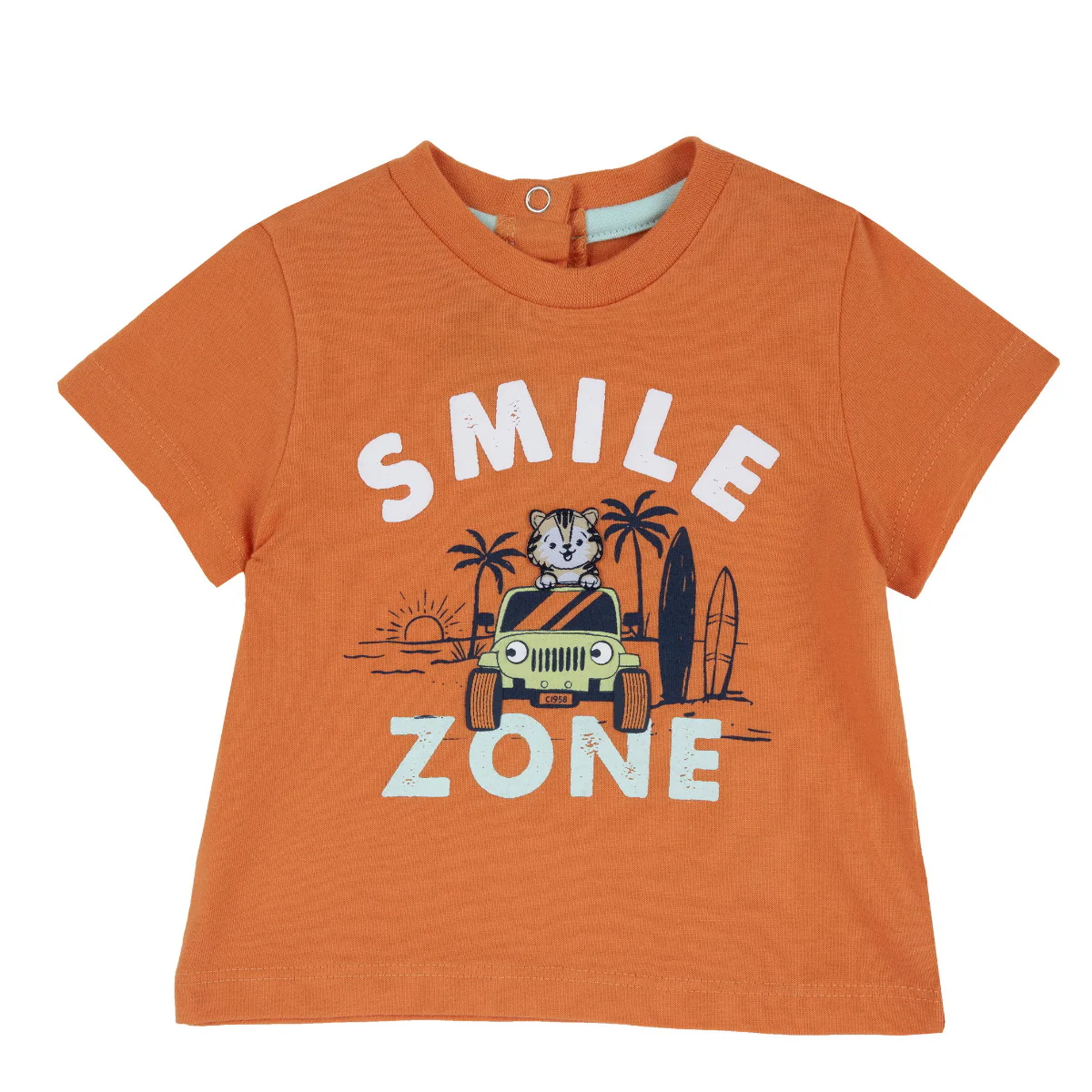 Chicco t-shirt girocollo neonato cotone arancio Maniche corte Chiusura sul retro con bottoni a pressione Stampa frontaleComposizione: 100% cotoneMade in IndiaCollezione Primavera Estate Vestibilitร :levTaglia Etร