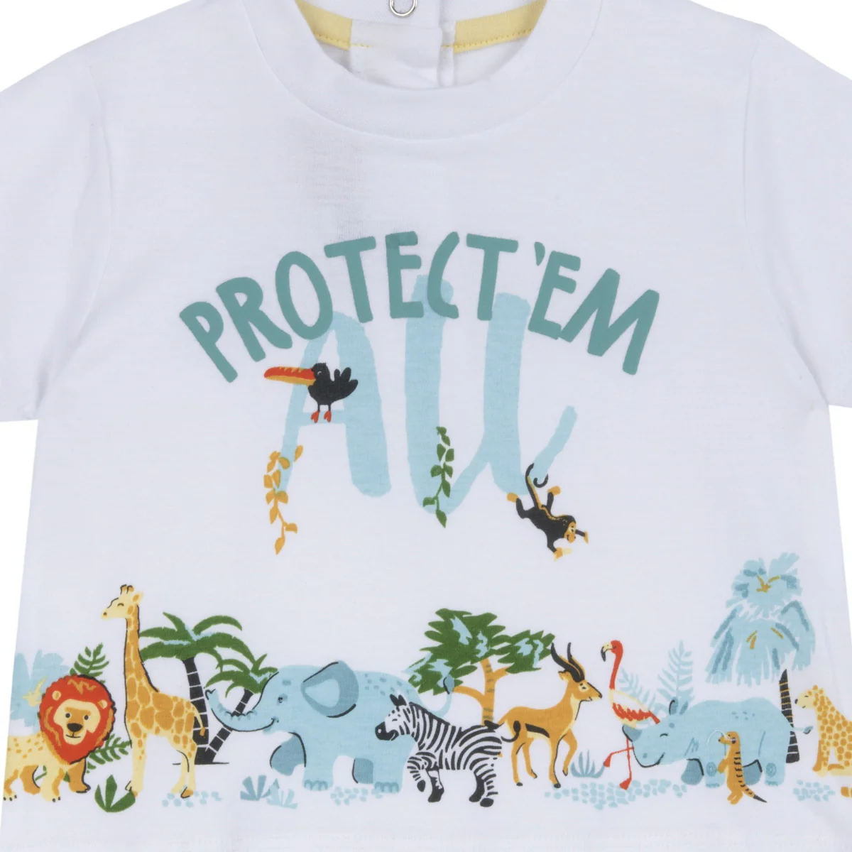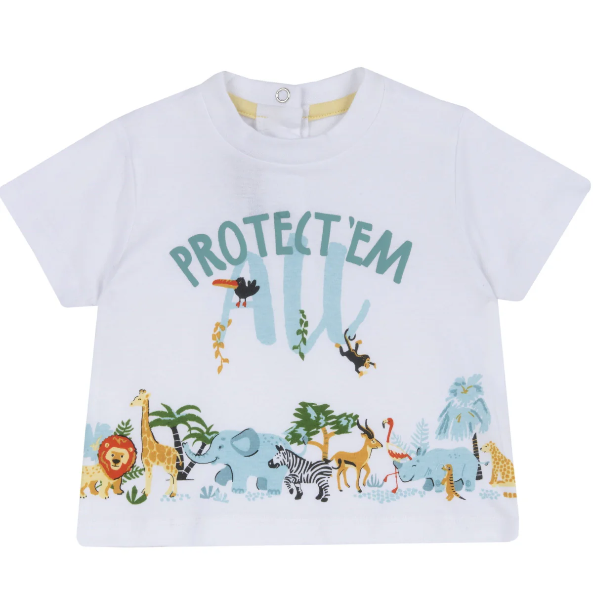 Chicco t-shirt neonato puro cotone biancoGirocolloManiche corteStampe frontale Composizione: 100% cotoneMade in BangladeshCollezione Primavera Estate 2022 Vestibilitร :Taglia Etร
