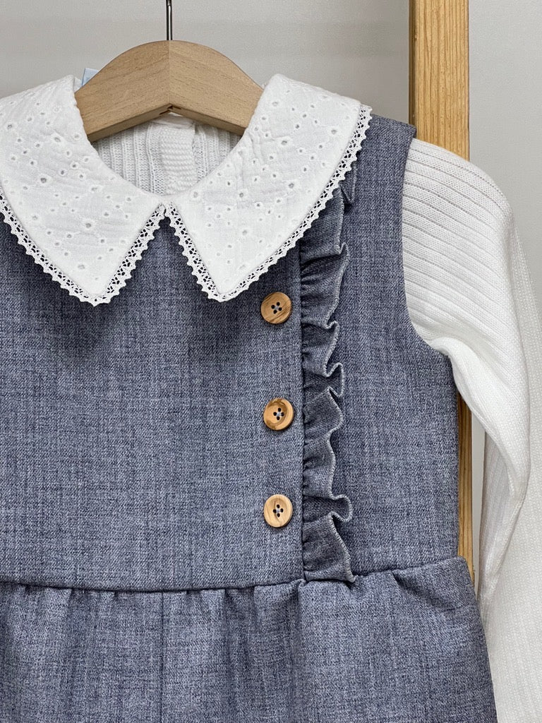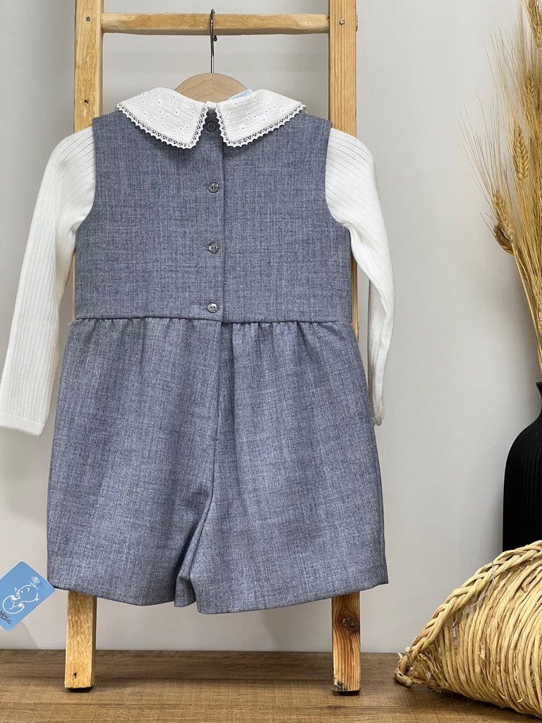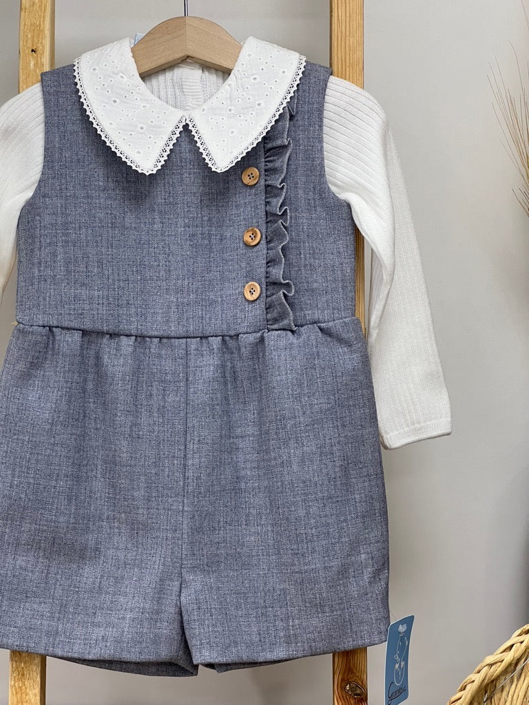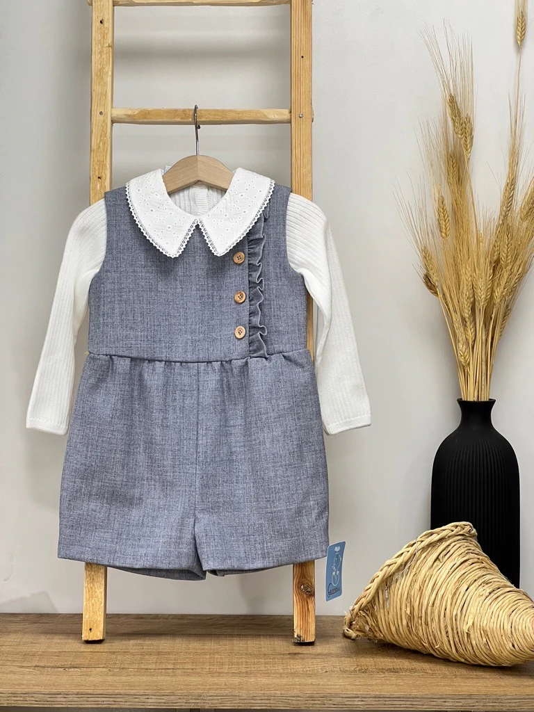 Salopette + maglia a coste con colletto camicia