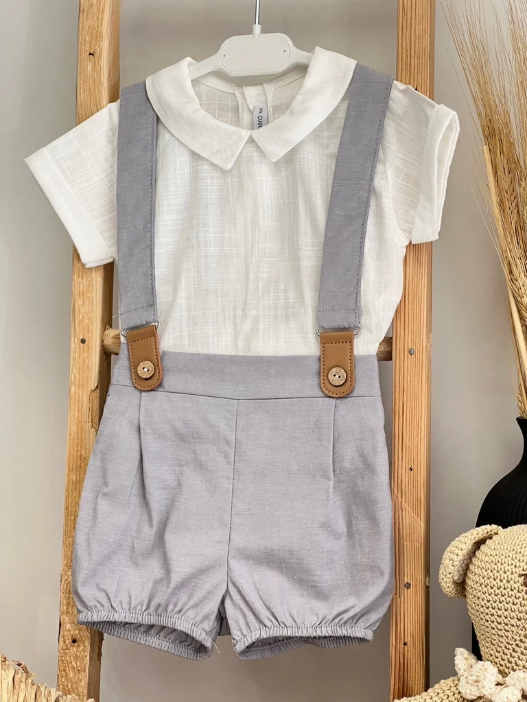 Completo BimboCamicia salopette in lino-100% Cotone organico