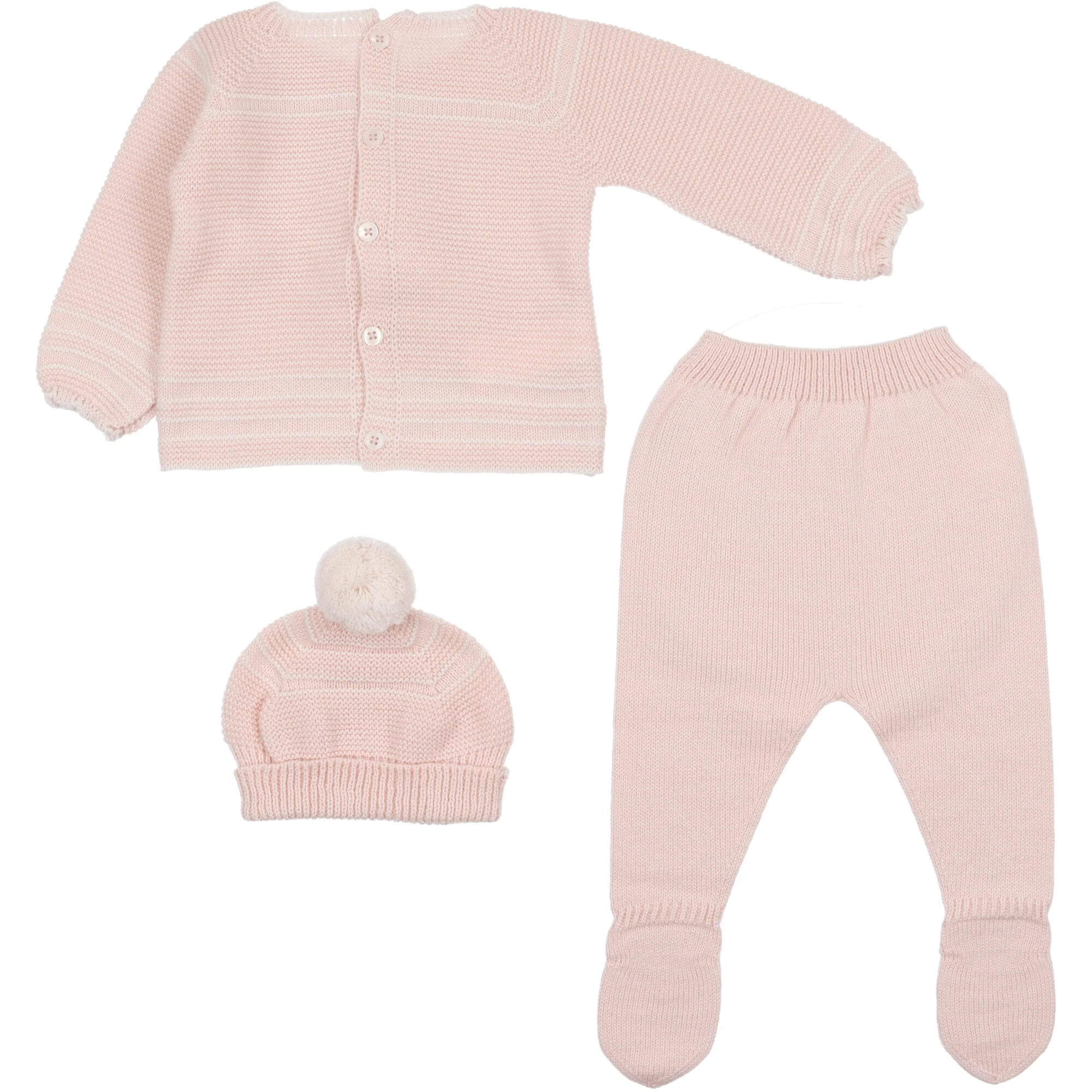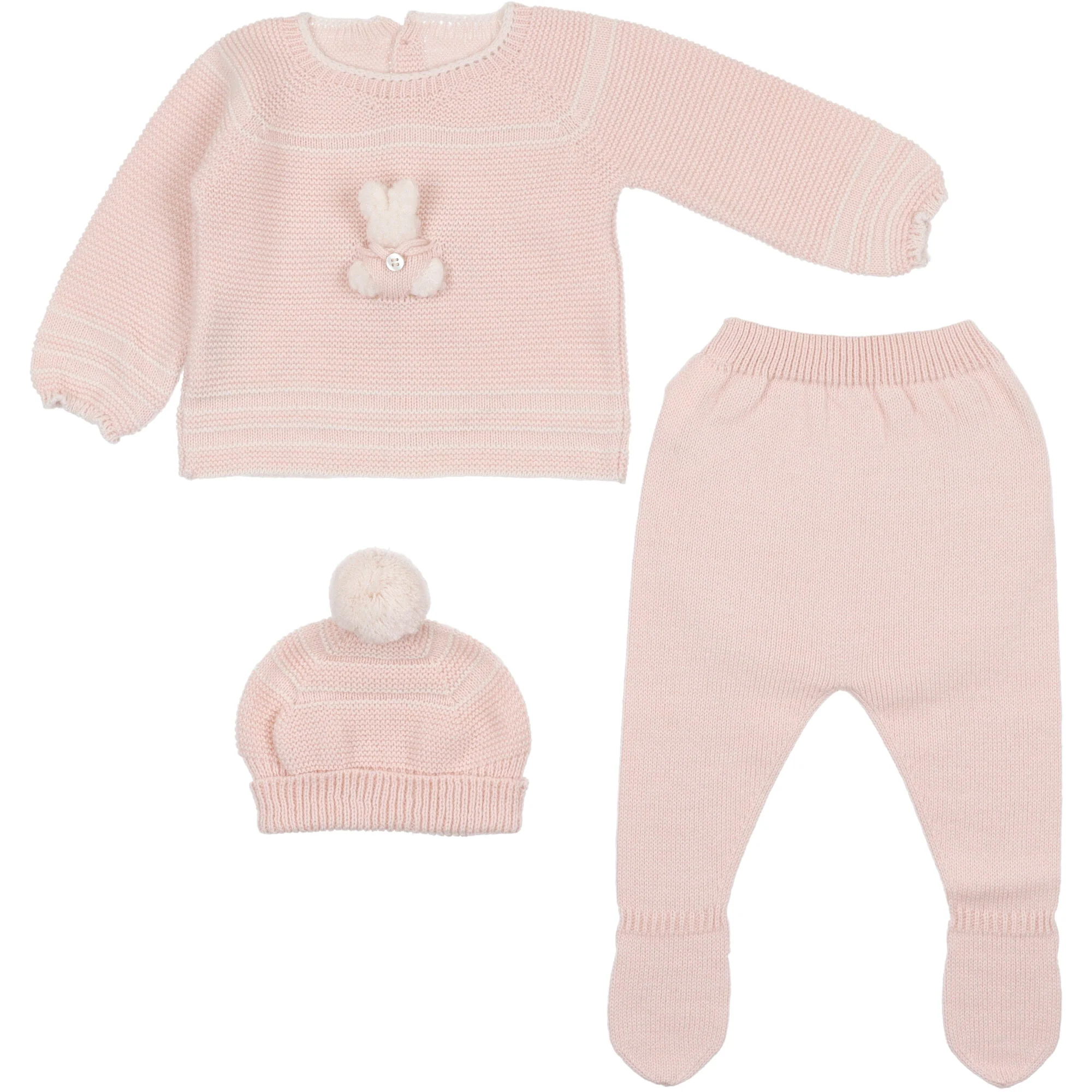 Completo in misto lana รจ pensato per avvolgere la tua bambina in un abbraccio di morbidezza e calore durante la stagione invernale. La lavorazione a maglia fine dona al set un aspetto elegante e delicato, mentre il piccolo coniglietto applicato sulla maglia aggiunge un tocco tenero e raffinato.