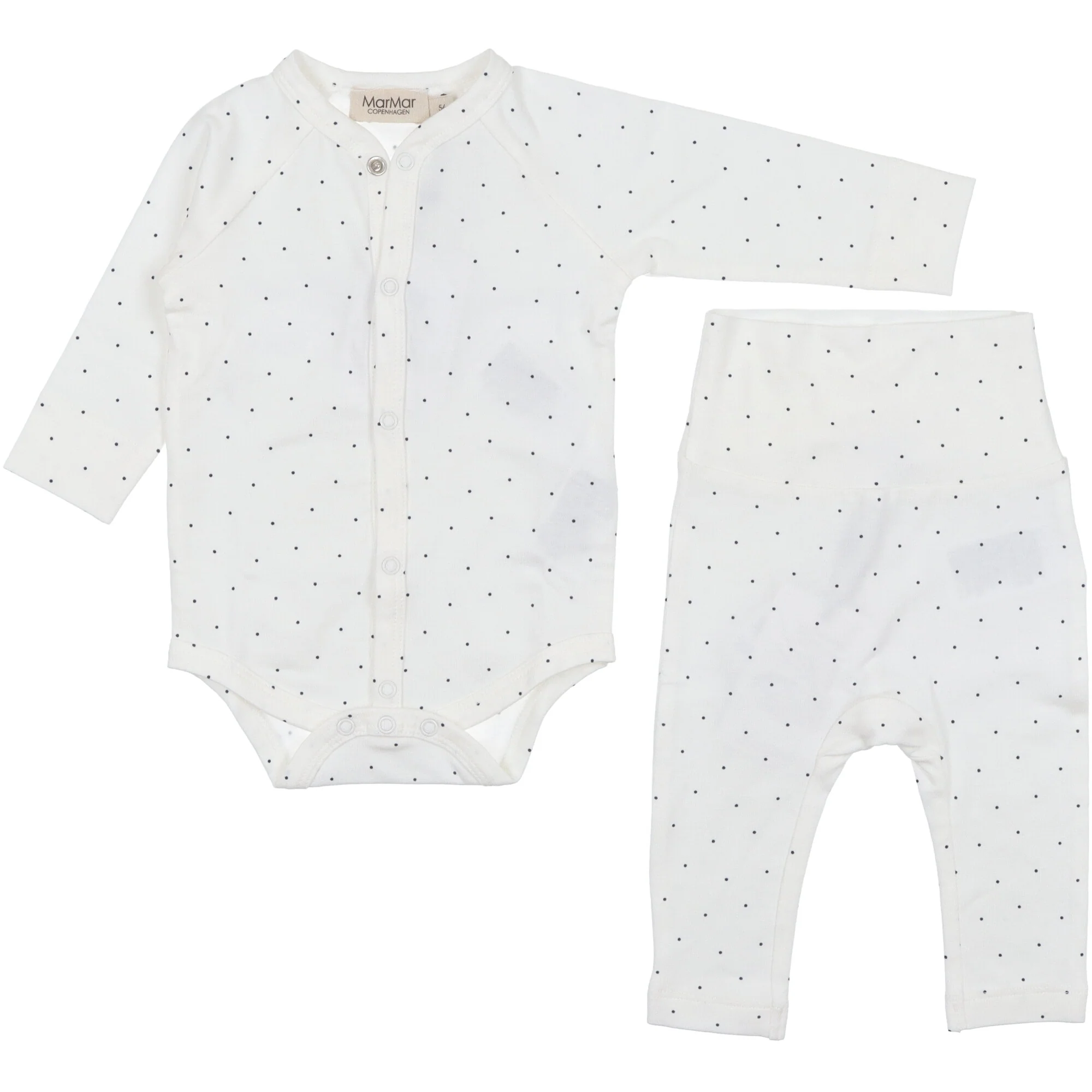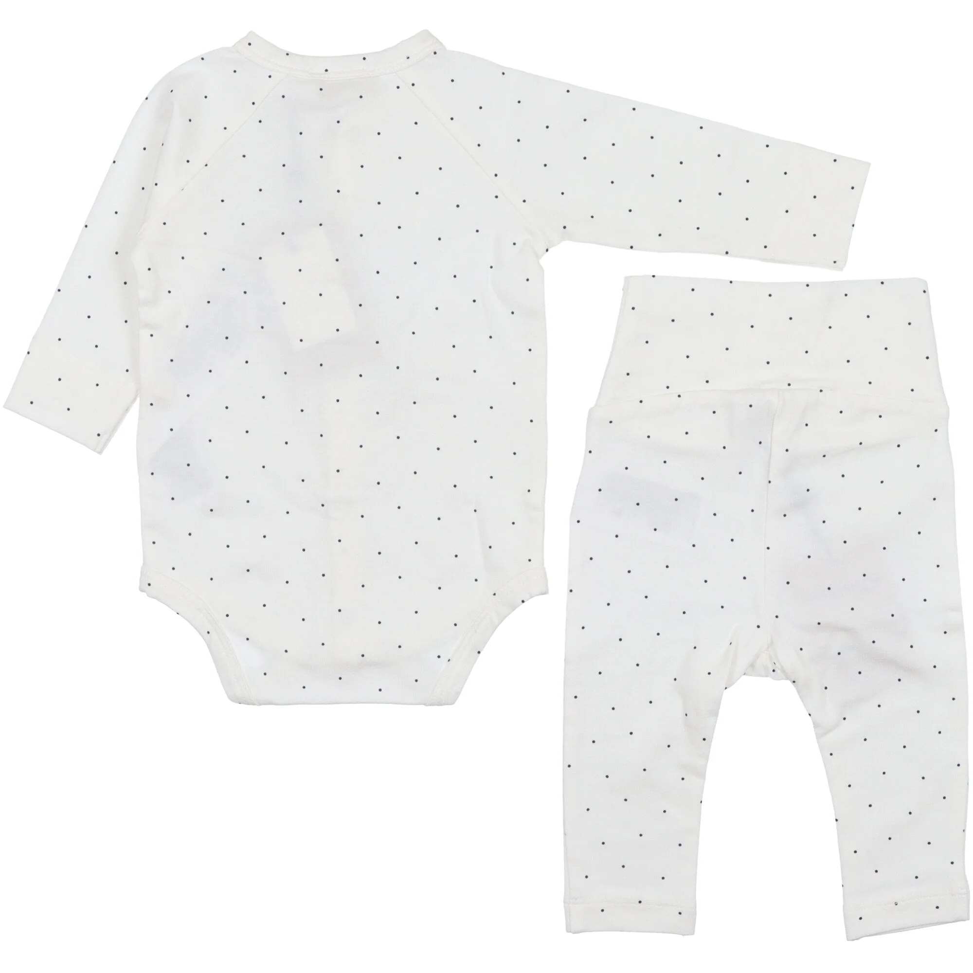 Body a maniche lunghe si chiude con bottoni automatici sul davanti e tra le gambe per facilitare il cambio del pannolino. Il body รจ morbido, elastico e comodo da indossare. Pantaloni senza piede, morbidi, elastici e comodi da indossare. Colore bianco con piccoli pois colore nero Certificato Standard 100 da OEKO-TEXยฎ . Contiene cotone biologico […]