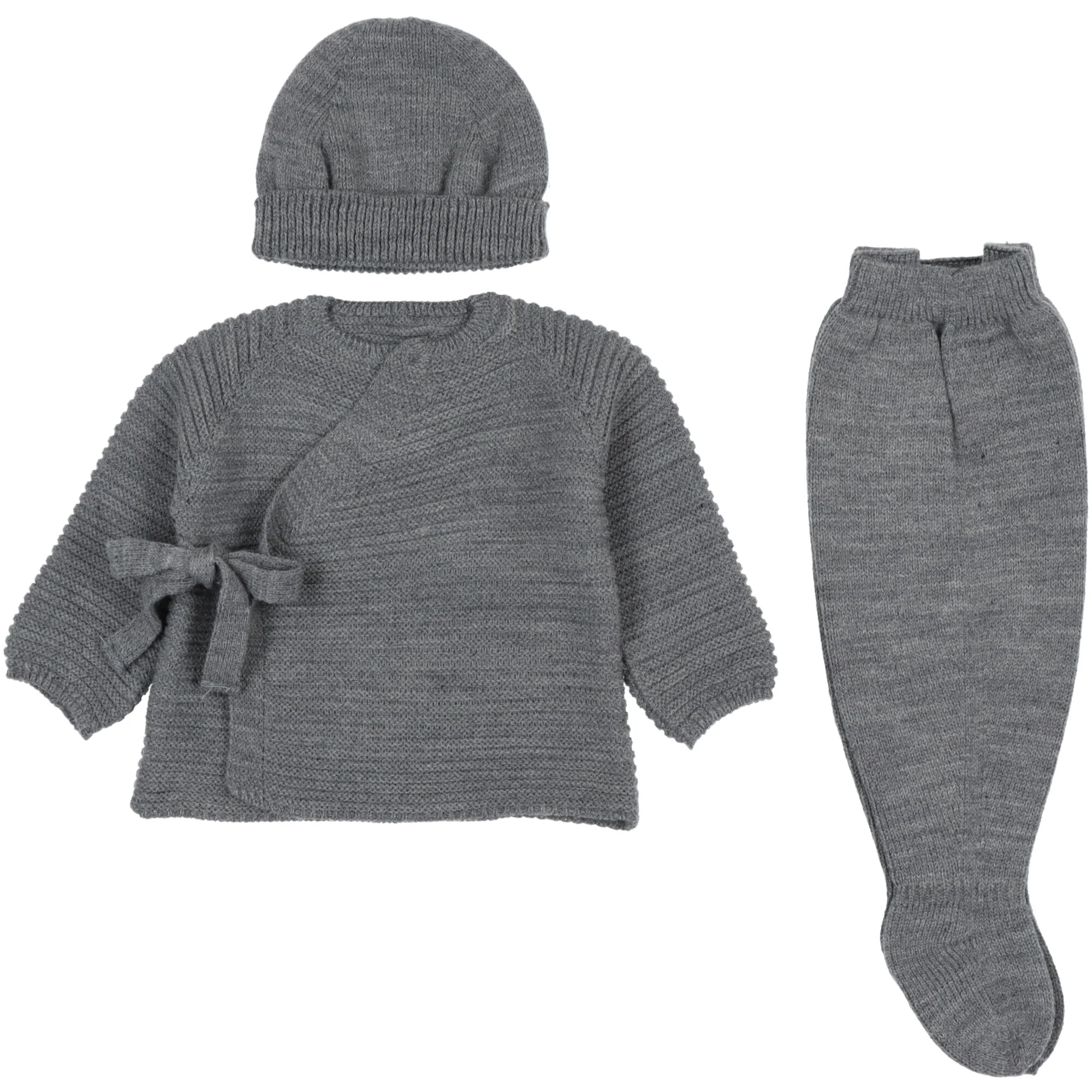 Cardigan a incrocio, maniche lunghe raglan, vestibilitร comoda chiusura con lacci, completo di ghettina con cintura elastica morbida e cappellino con risvolto.Composizione: 60% lana, 40% acrilico.Cura: si consiglia un lavaggio a mano con detersivo delicato, no candeggio, no asciugatrice, si puรฒ stirare a bassa temperatura.