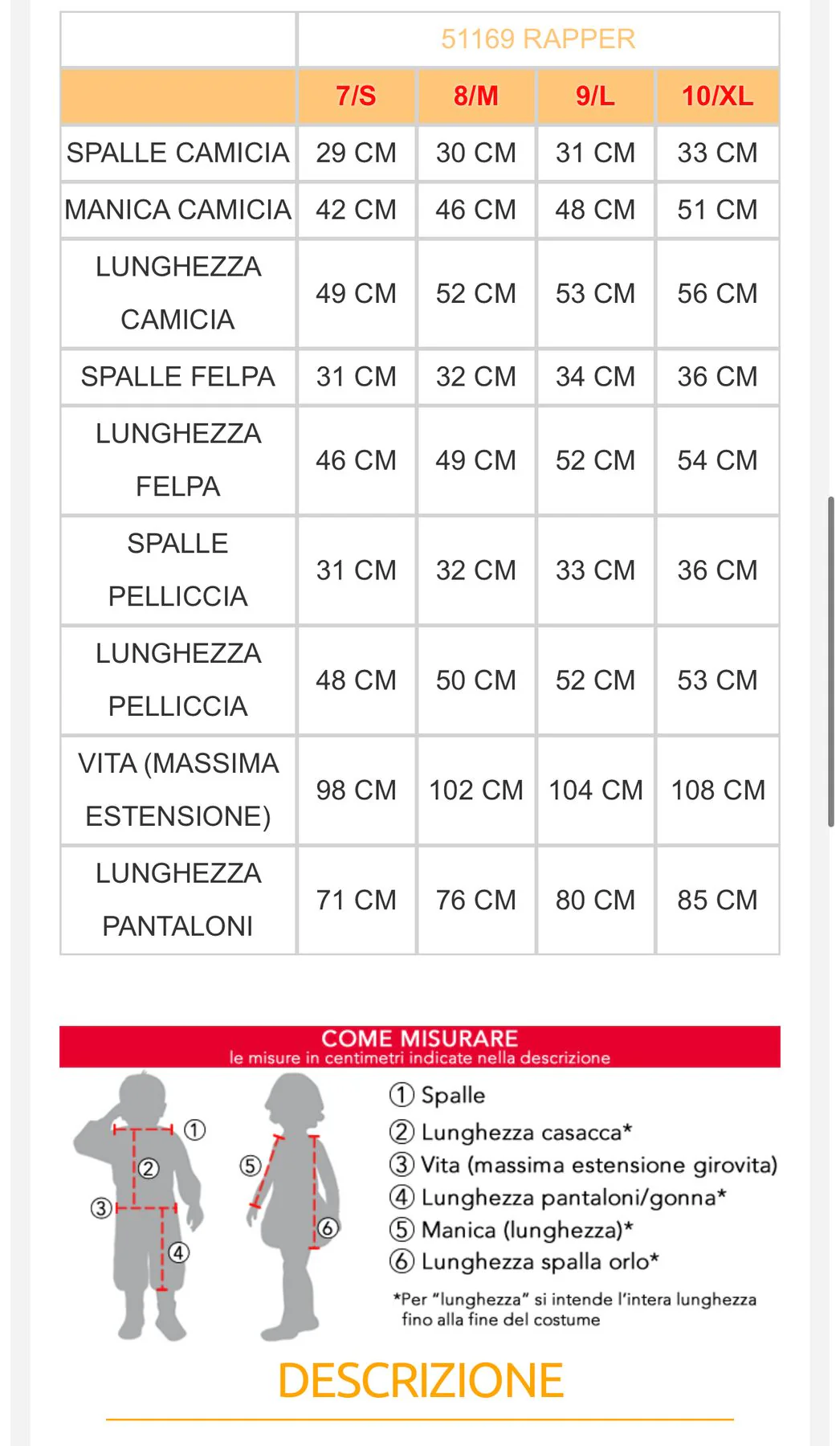| Taglia | |
