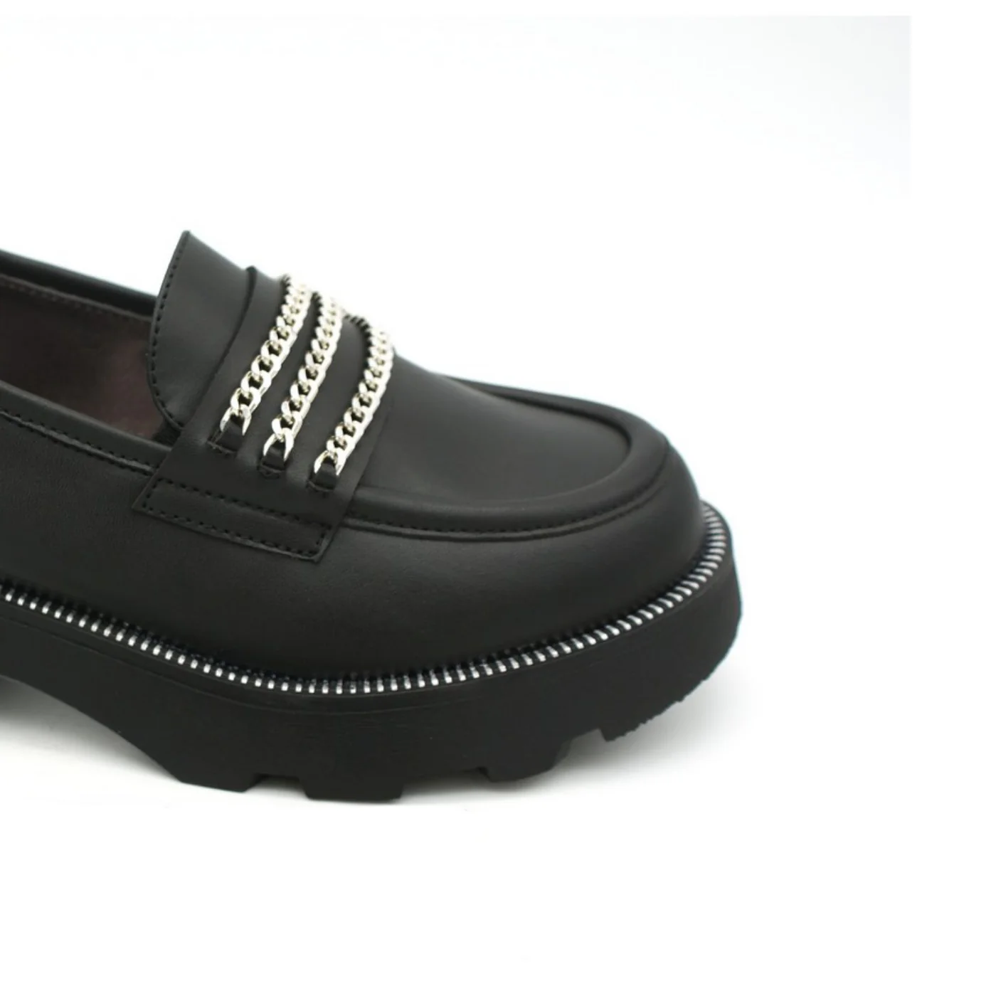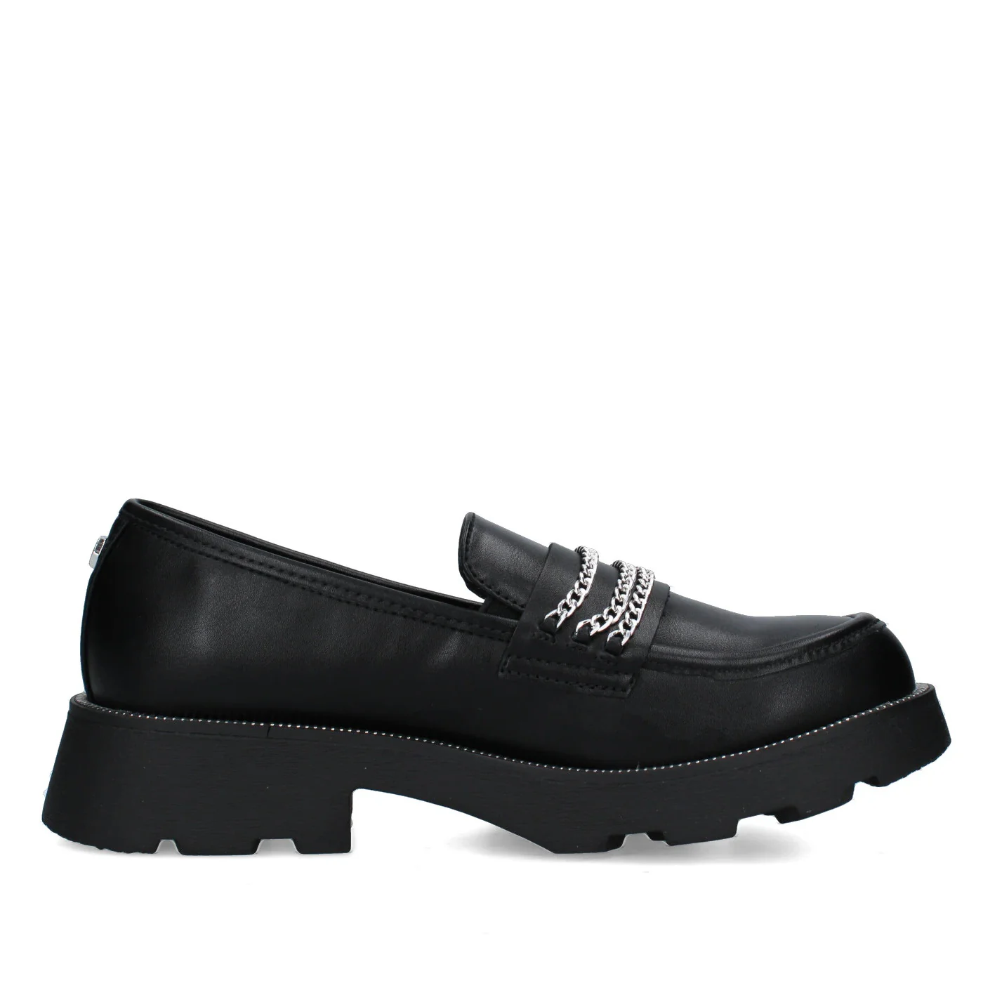 Cult mocassino ragazza in vera pelle nero Para alta con logo in matallo Dettaglio catena Composizione: vera pelle Collezione Continuativa Vestibilitร :Taglia Europea