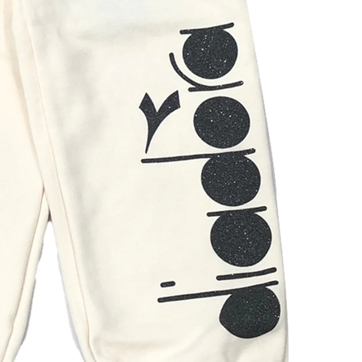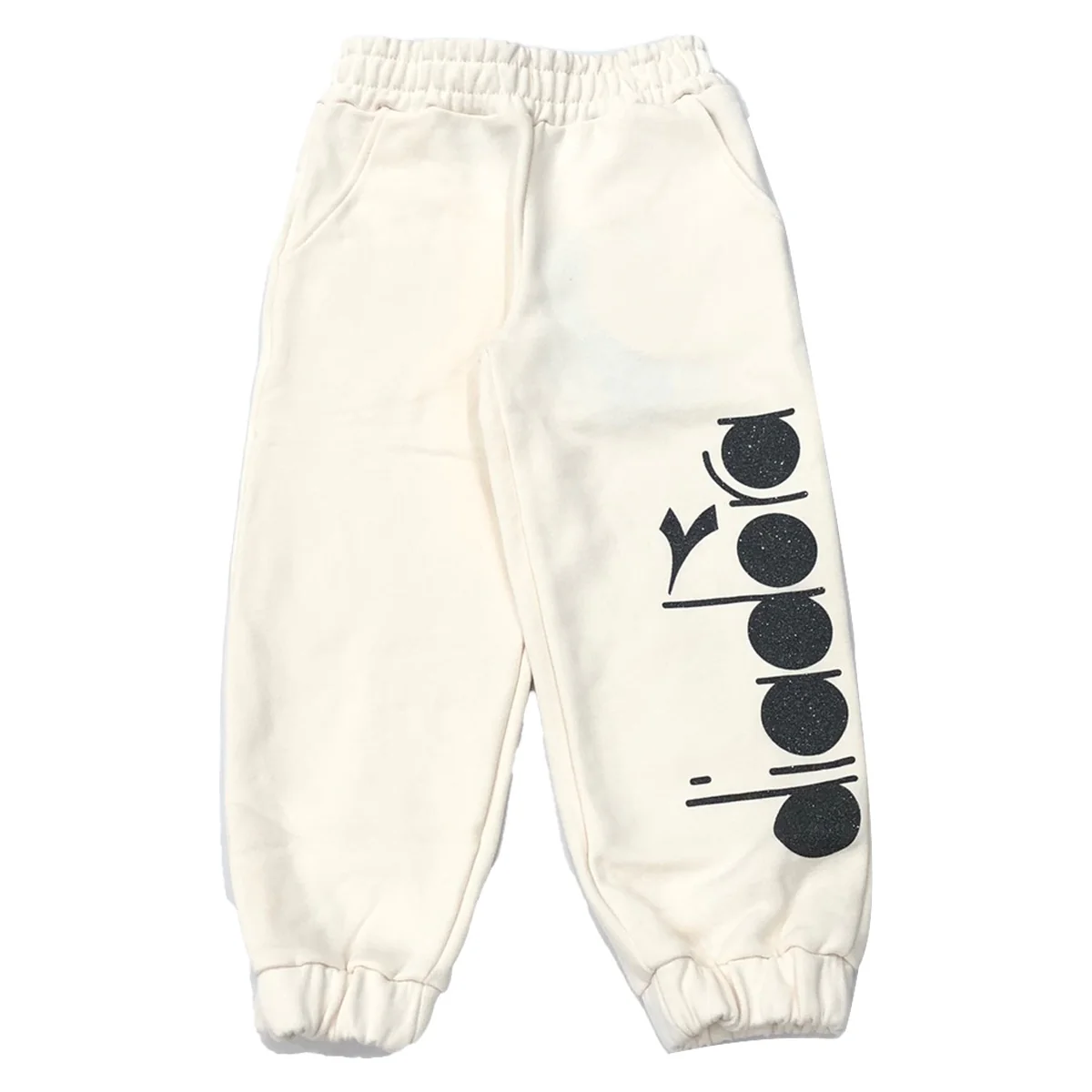 Diadora pantalone tuta bambina panna Cotone felpatoElastico in vitaStampa logo glitter su gambaElastico sulle caviglie Composizione: 100% cotoneMade in AlbaniaCollezione Autunno Inverno Vestibilitร :Taglia Etร