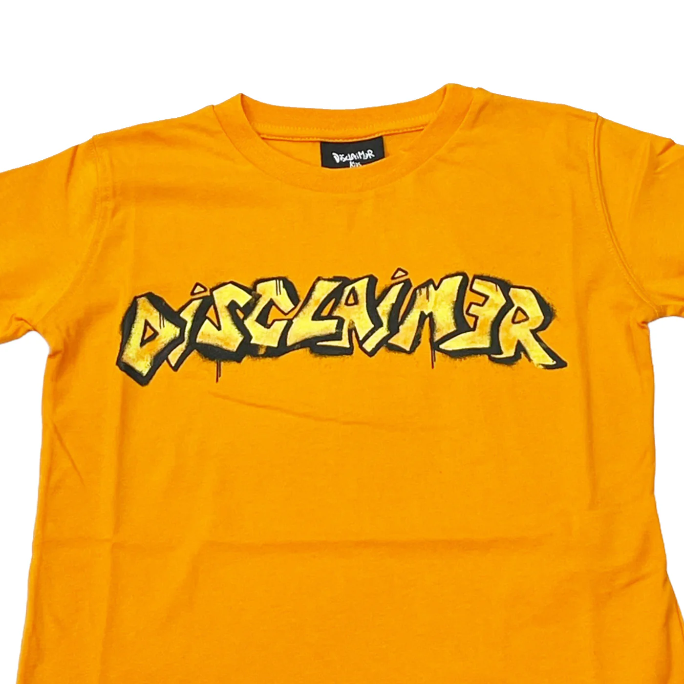 Disclaimer t-shirt girocollo bambino in cotone arancioManiche corte Max stampa logo frontale Composizione: 100% cotoneMade in ItalyCollezione Primavera Estate Lavaggio:Lavare max 30ยฐ gradiNon candeggiareNon lavare a seccoNon asciugatriceStirare bassa temperatura Vestibilitร :Taglia Etร