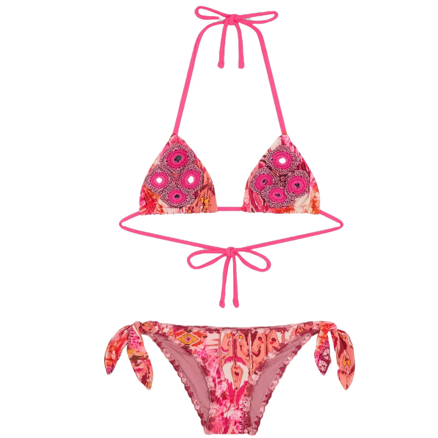 F**K costume bikini bambina fuxia fantasia Top triangolo con dettagli in crochet Slip con fiocco regolabile Orli in crochetComposizione: 80% poliammide 20% elastanMade in AlbaniaCollezione Primavera Estate Vestibilitร :Taglia Etร