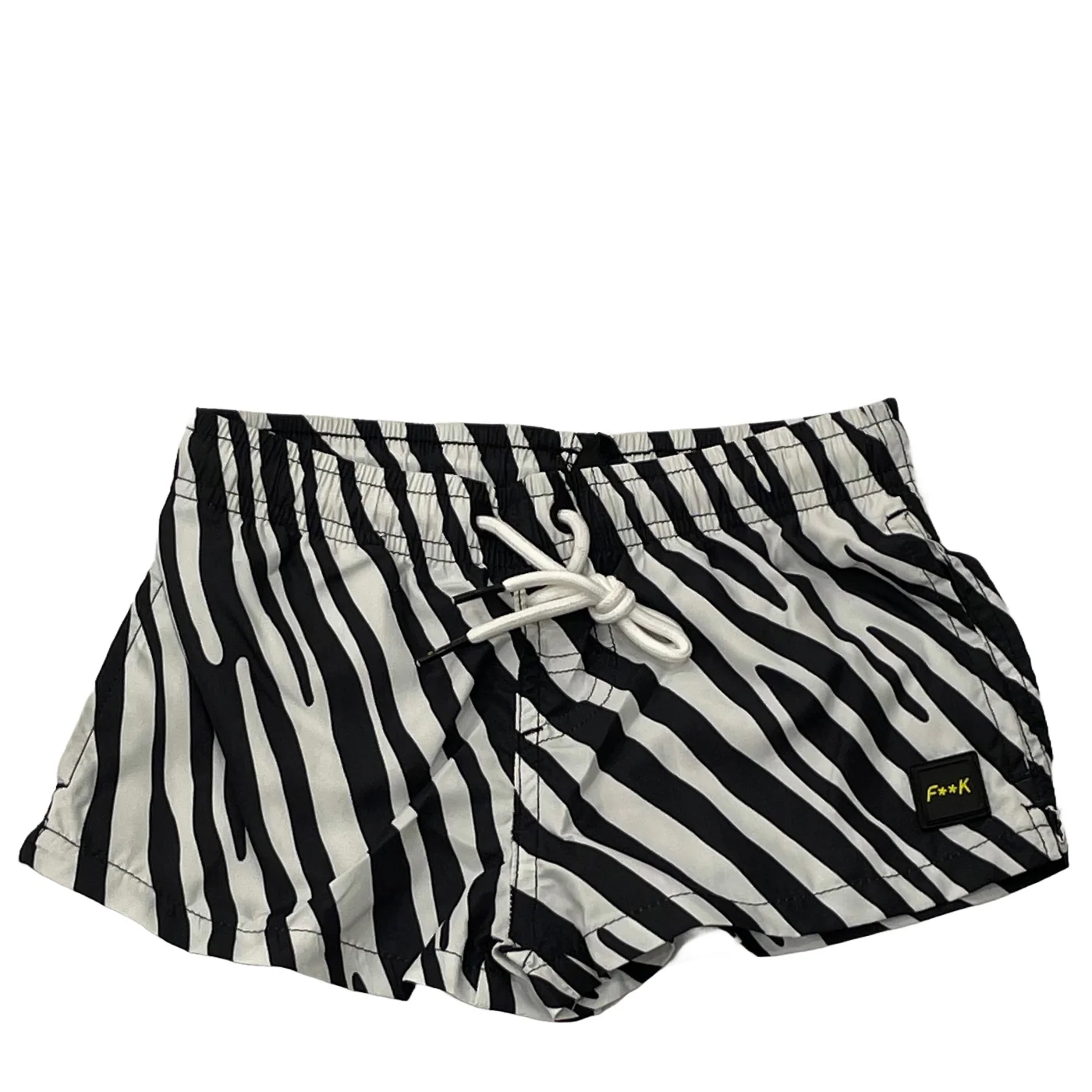 F**K shorts fuori acqua ragazza bianco nero Fantasia animalier Vita elastica con coulisse regolabile Tasche a filo Patch logo su gambaComposizione: 100% poliestereMade in CinaCollezione Primavera Estate Vestibilitร :Taglia Etร