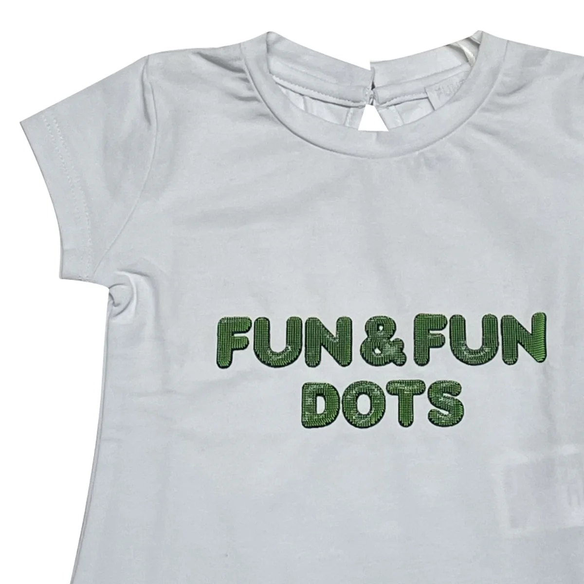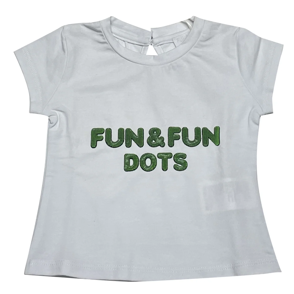 Fun&Fun t-shirt neonata cotone biancoGirocolloManiche corteLogo stampato a rilievo frontale a contrastoChiusura con monobottone sul retroComposizione: 95% cotone 5% elastenMade in CinaCollezione primavera estate Vestibilitร :Taglia Etร