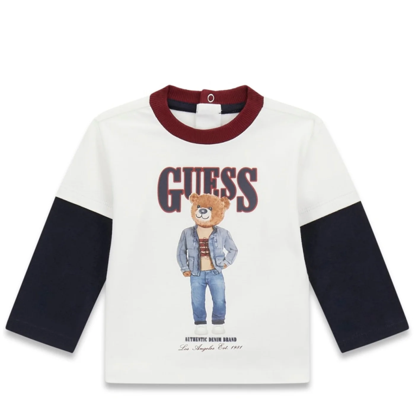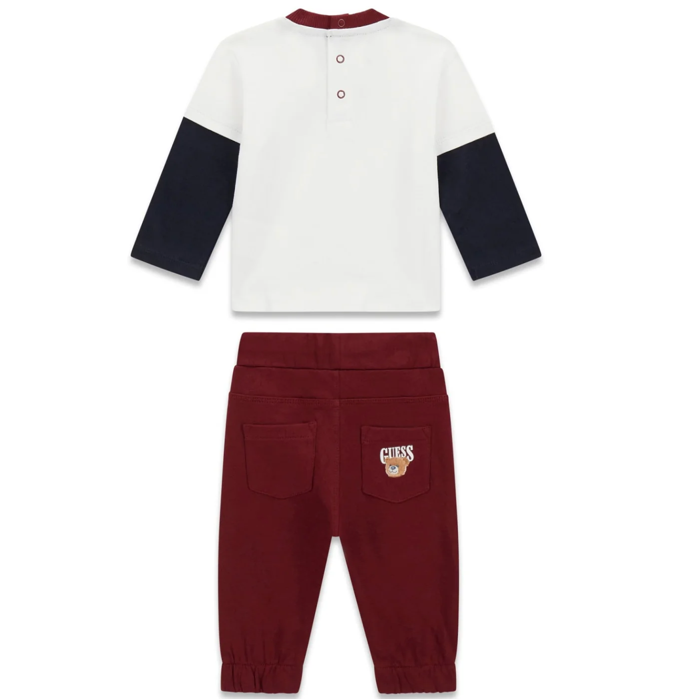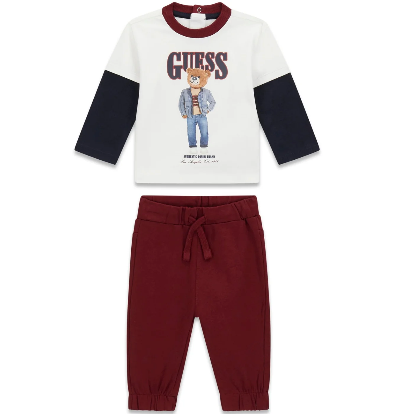 Guess completo due pezzi neonato in cotone bianco bordeaux