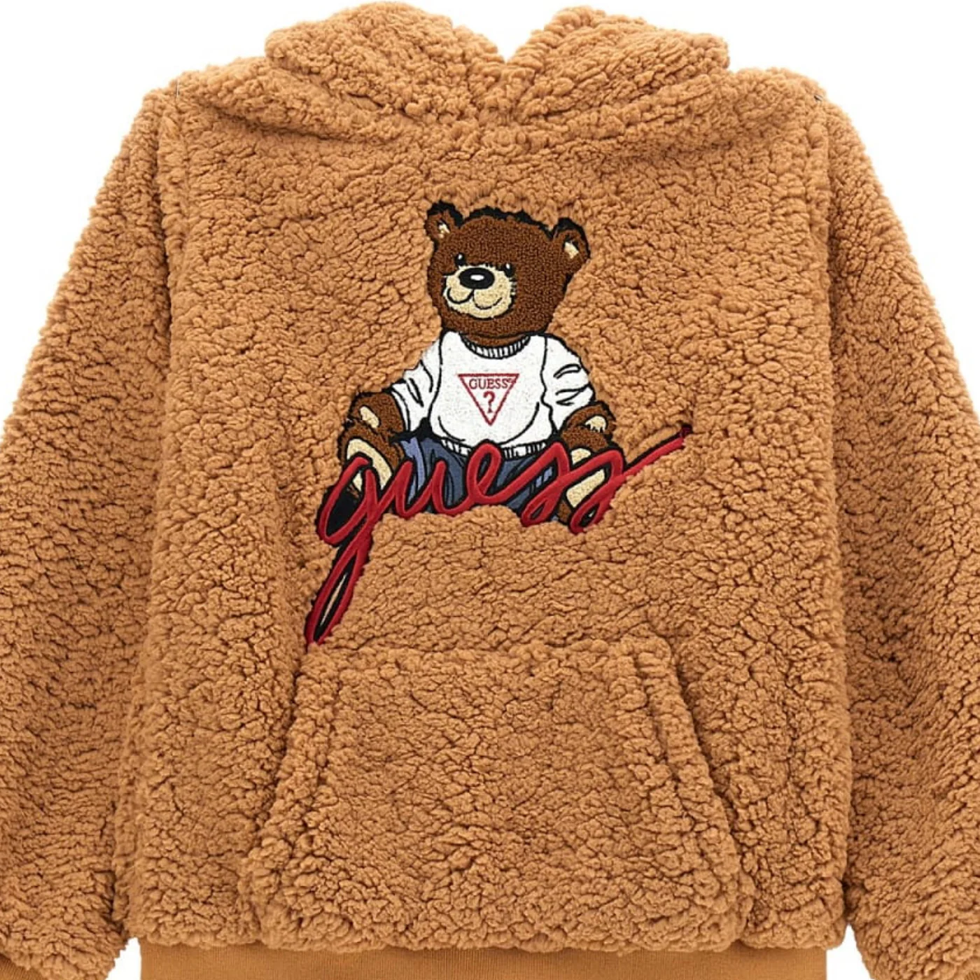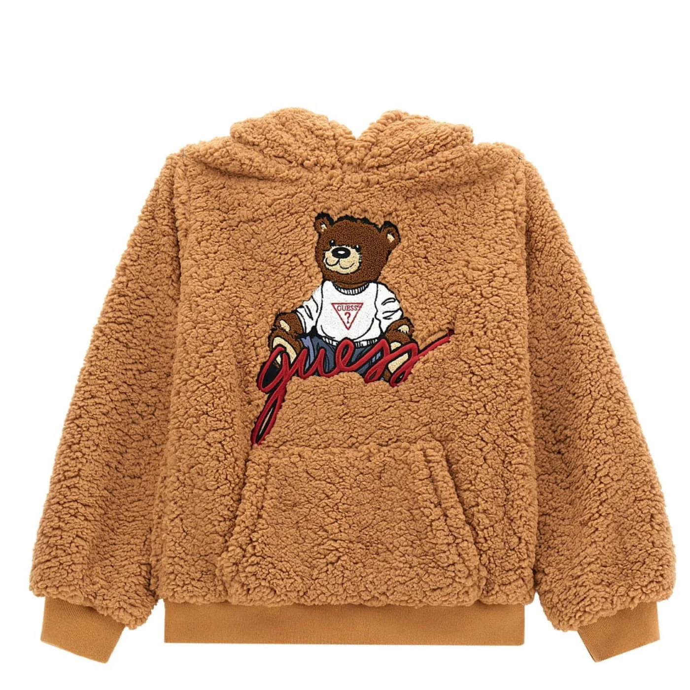 Guess felpa teddy con cappuccio bambina biscotto Ricamo con patch frontale Tasche a marsupio Polsini e fondo a costeComposizione: 100% poliestereMade in CinaCollezione Autunno Inverno Vestibilitร :Taglia Etร