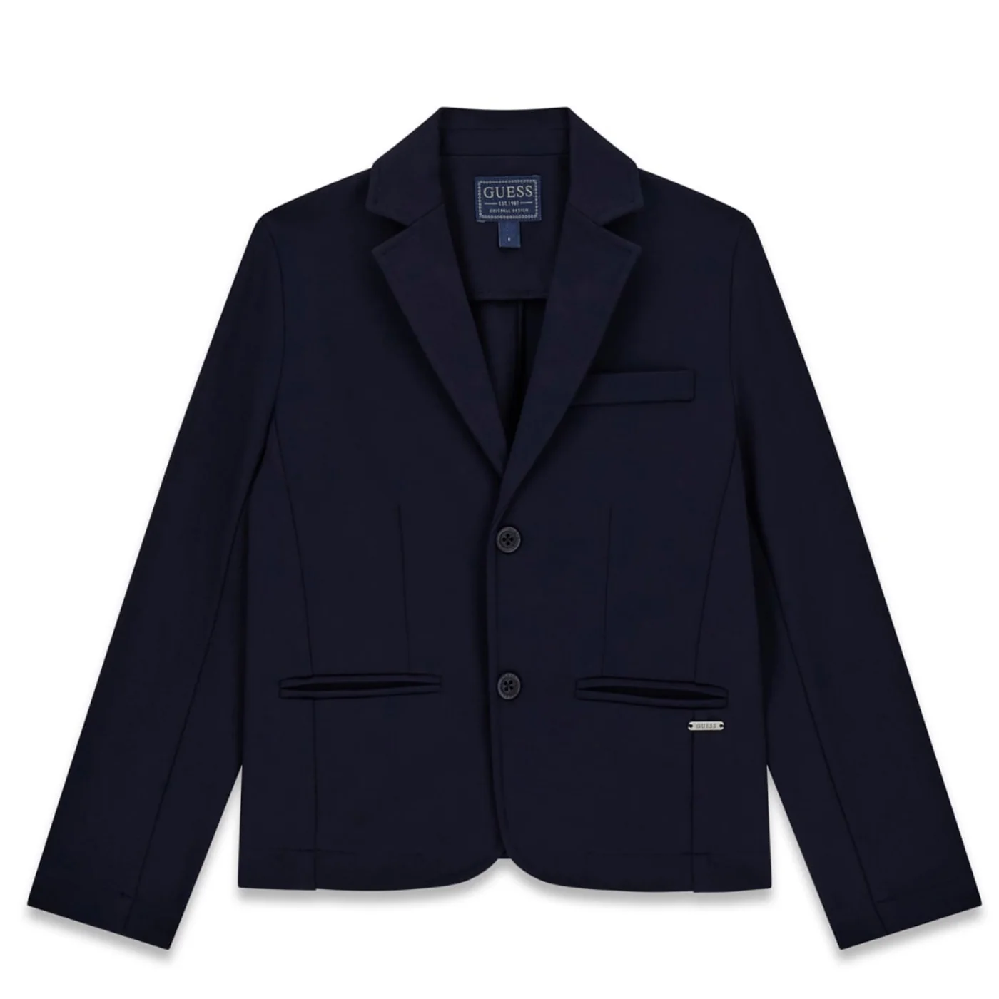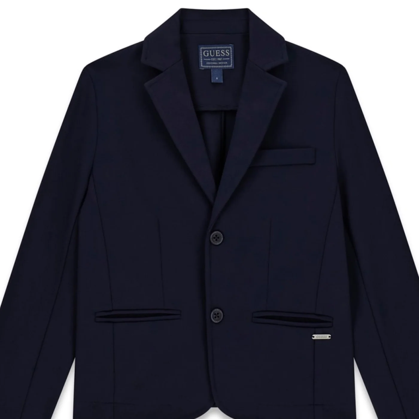 Guess giacca ragazzo in punto milano blu Scollo reverse classico Chiusura a due bottoni Tasche a filo Patch logo in metallo frontaleComposizione: 67% viscosa 29% poliammide 4% elastanMade in CinaCollezione Primavera Estate Vestibilitร :Taglia Etร