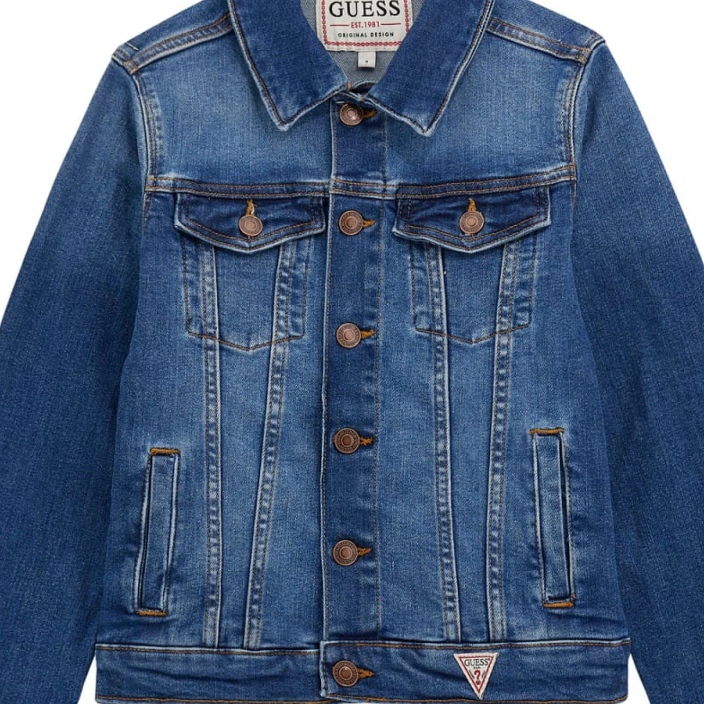 Guess giubbino jeans baby boy blu Denim in cotone Chiusura con bottoni logati Stampa logo interna Composizione: 98% cotone 2% elastanMade in IndiaCollezione Continuativa Vestibilitร :Taglia Etร